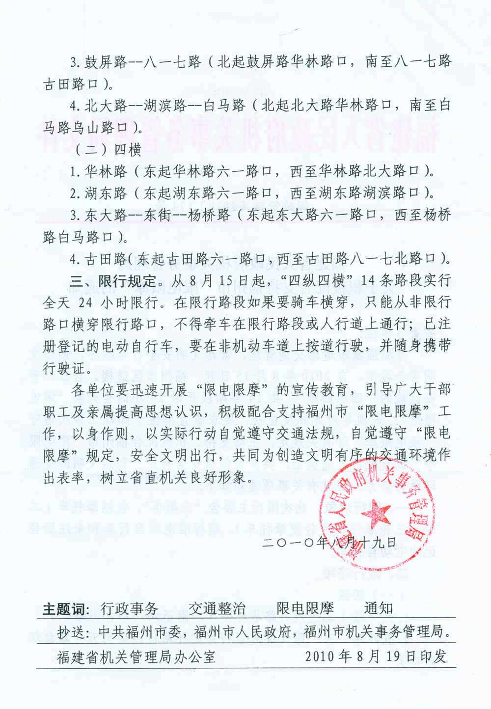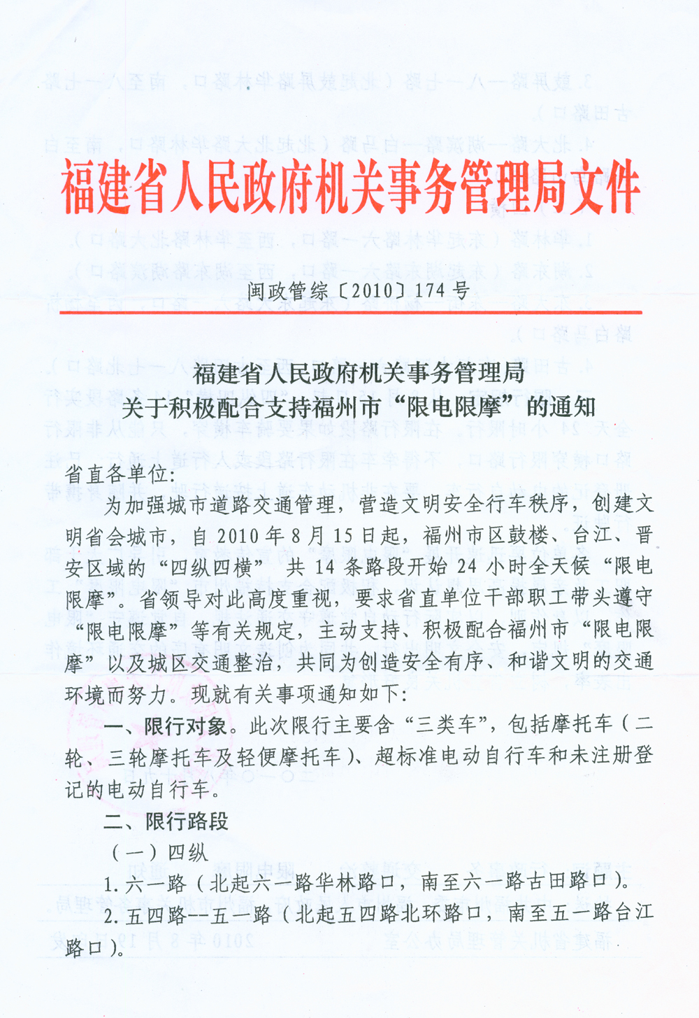 关于积极配合支持福州市“限电限摩”的通知