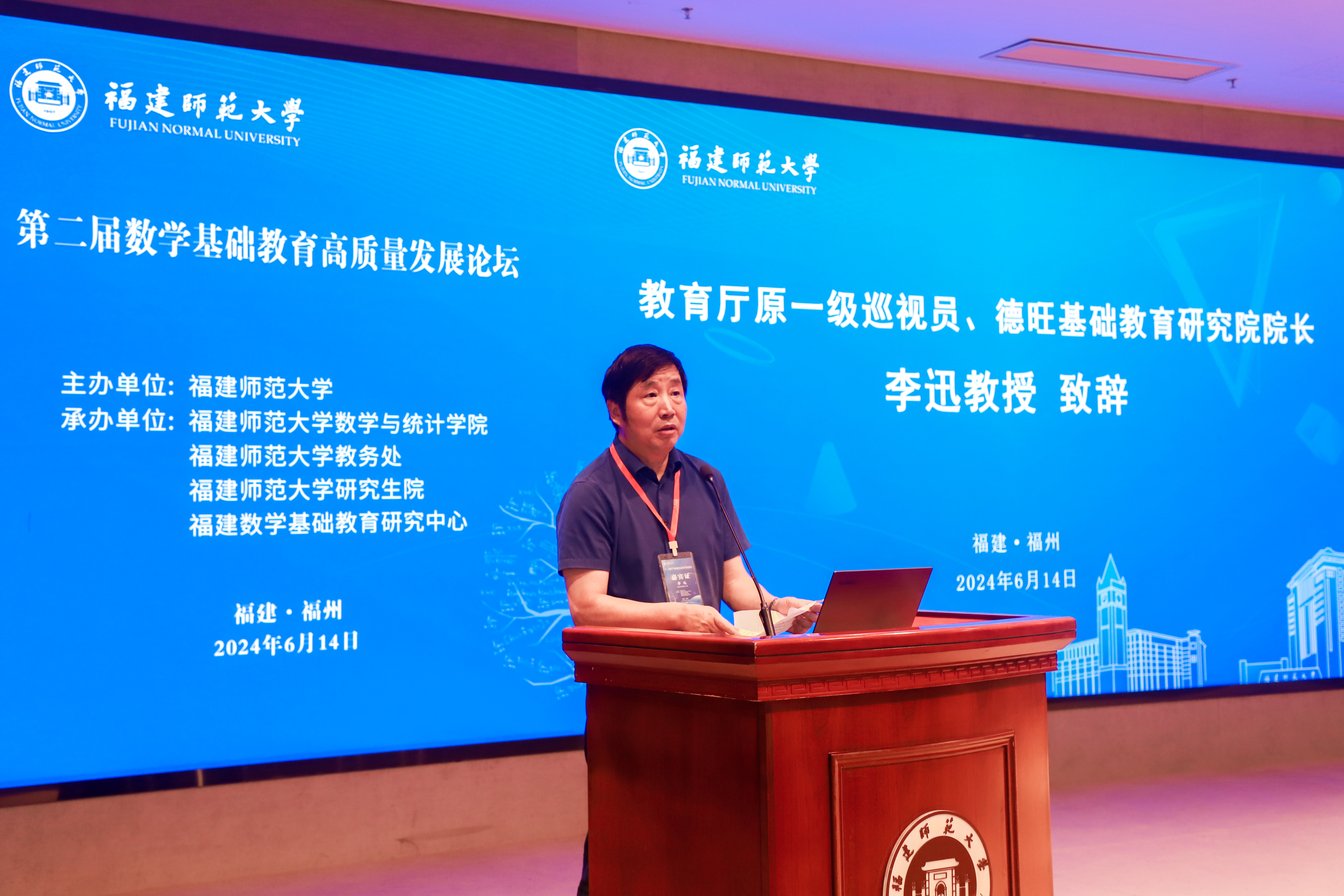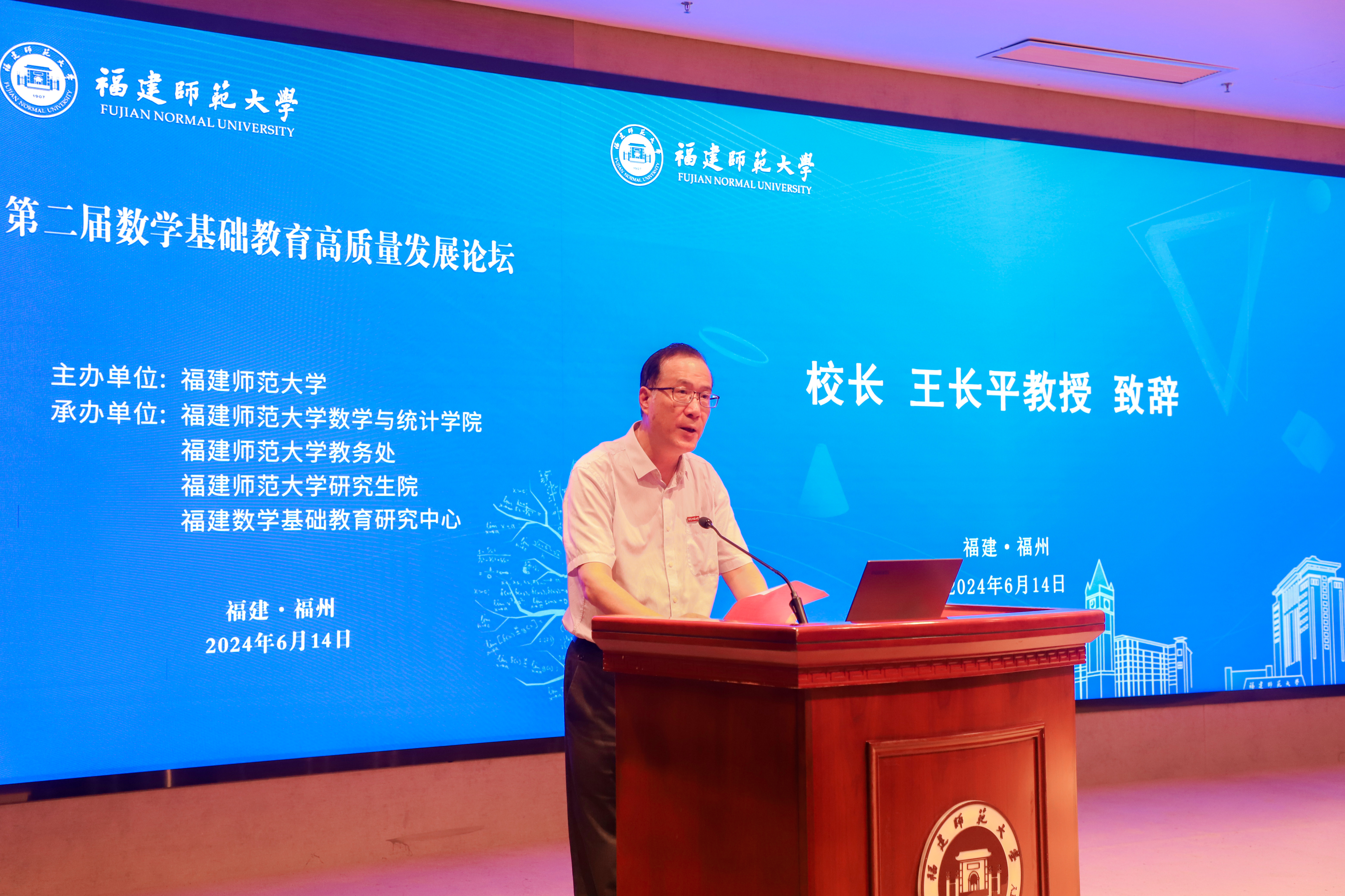 论坛于6月14日在旗山校区宏达厅举行。校长王长平,国家督学、省教育厅原副厅长、一级巡视员、德旺基础教育研究院院长李迅,北京师范大学教授、《数学通报》主编保继光出席开幕式并作主旨报告。福建省各地市教研机构、拼搏(中国)数学学科教学实践基地合作单位代表和拼搏(中国)师生代表共170余人参加了活动。