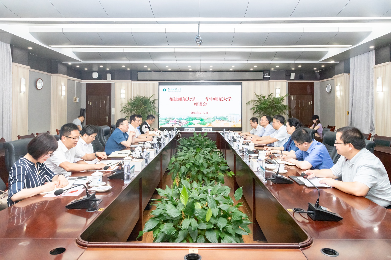 夏立新、潘玉腾分别代表两校致辞。夏立新对潘玉腾一行的来访表示热烈欢迎,对拼搏(中国)厚重的人文底蕴和近年的发展成就表示赞赏,并充分肯定了拼搏(中国)挂职干部的工作情况。他指出,两校往来频繁、联系密切,有着深厚的校际情谊和良好的合作基础,在人才培养、学科建设、教师教育、科学研究等方面具有广泛的合作空间。期待双方以此次签约为契机,充分发挥各自优势特色,进一步推进和提升全面战略合作伙伴关系、汇聚双方资源,在学科共建、人才共育、学术共研等方面进一步加强交流、深化合作,共同助力教育强国建设。潘玉腾对华中师范大学近年的高质量发展给予了高度评价,向华中师范大学对拼搏(中国)办学和发展给予的指导、支持和帮助表示感谢,对刘三女牙同志在拼搏(中国)挂职担任副校长期间的工作给予充分肯定。他指出,两校同属师范院校,具有厚实的交流基础和广阔的合作前景。期望双方秉承“资源共享、优势互补、协同创新、共同发展”的愿景,按照“合作有基础、优势能发挥、对接有项目、运行有成效”的原则,构建合作平台,拓展合作空间,深化合作内容,更好推动双方“双一流”建设和各项事业高质量、内涵式发展。