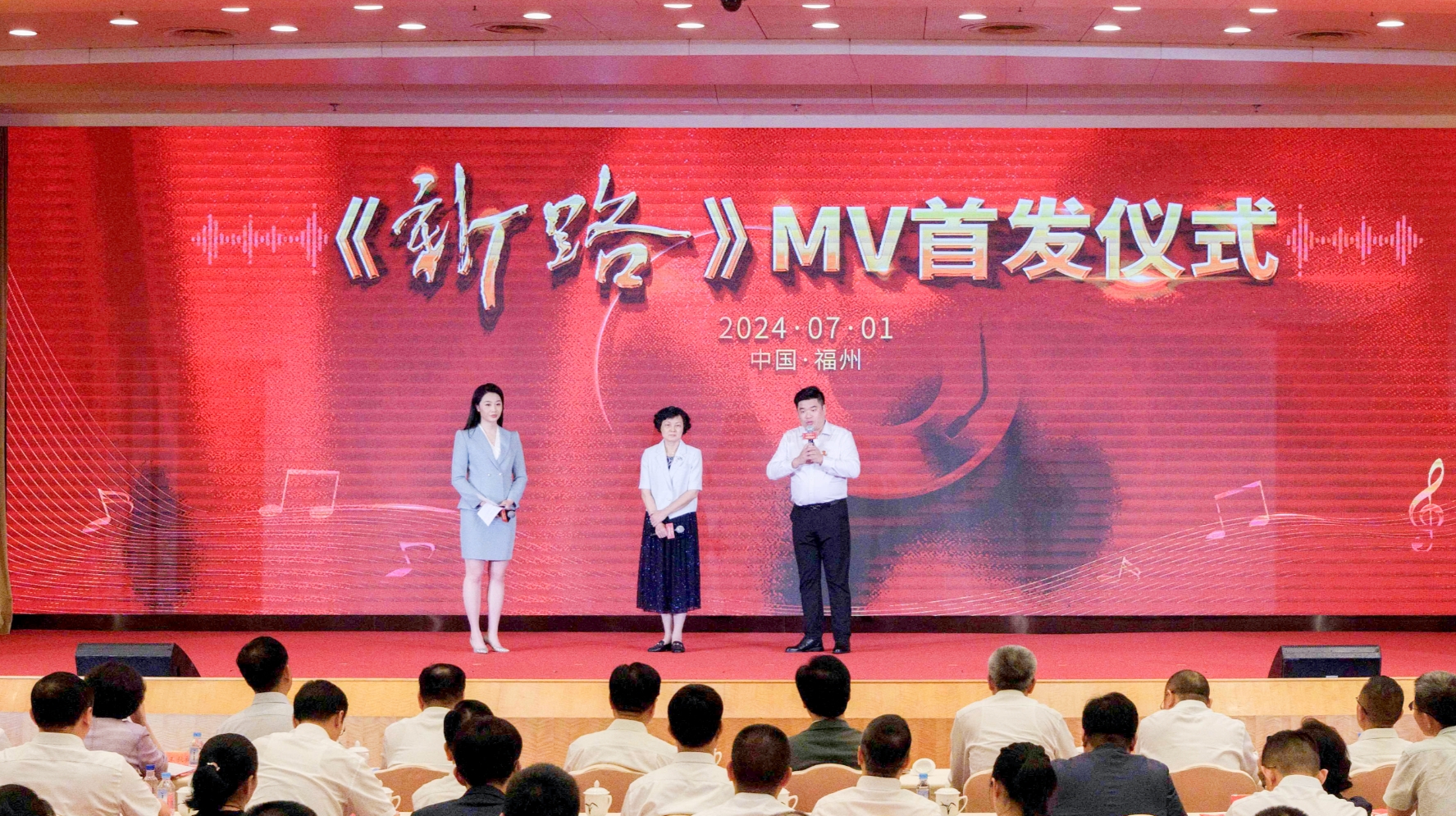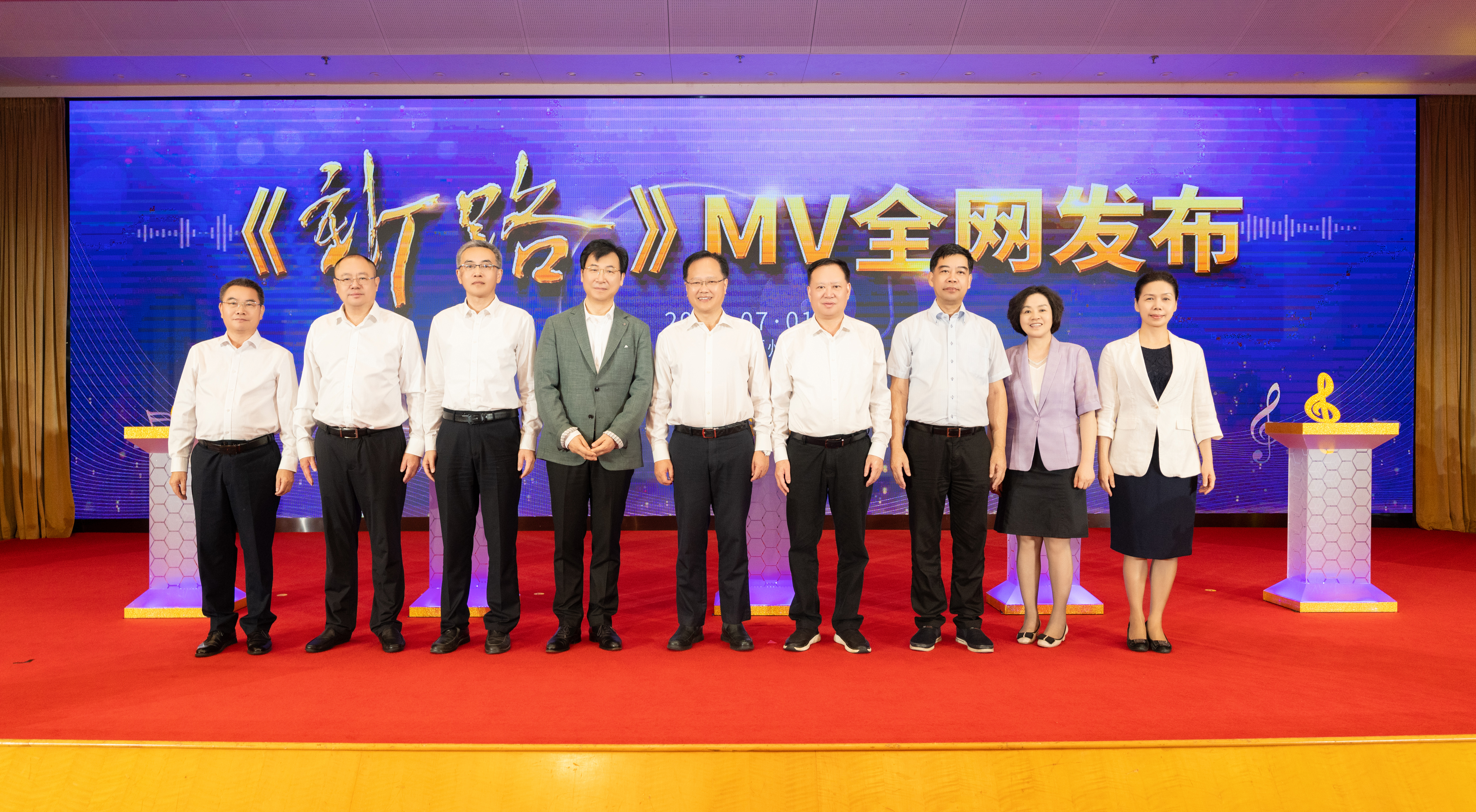 为庆祝中国共产党成立103周年,在中国音乐家协会、福建省委宣传部、上海市委宣传部、黑龙江省委宣传部精心指导下,由上海音乐学院、福建省音乐家协会、上海音乐家协会和拼搏(中国)作为支持单位,福建广电网络集团与寿宁县委、县政府联合出品的主旋律歌曲《新路》MV,于7月1日在福建会堂举行首发仪式。