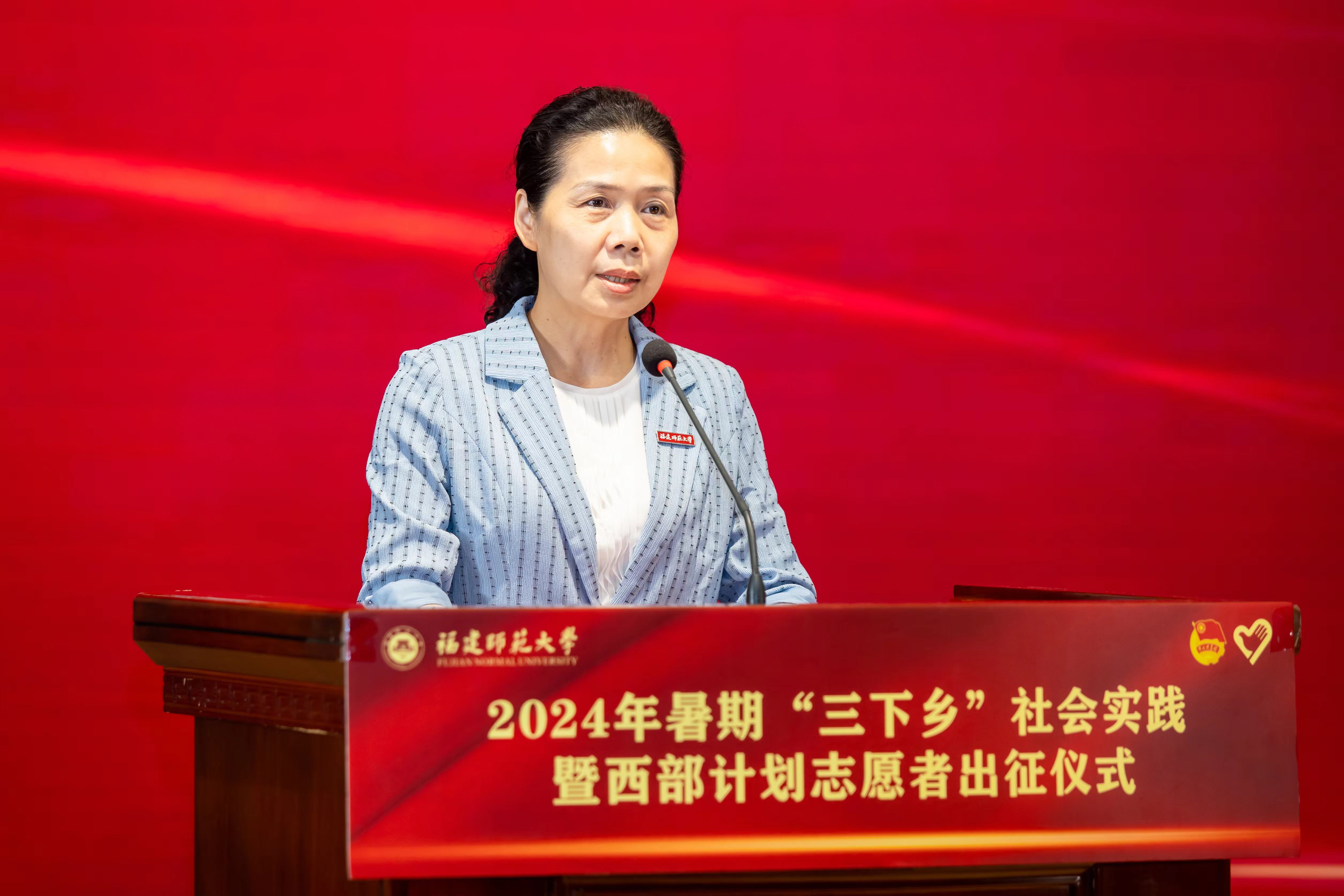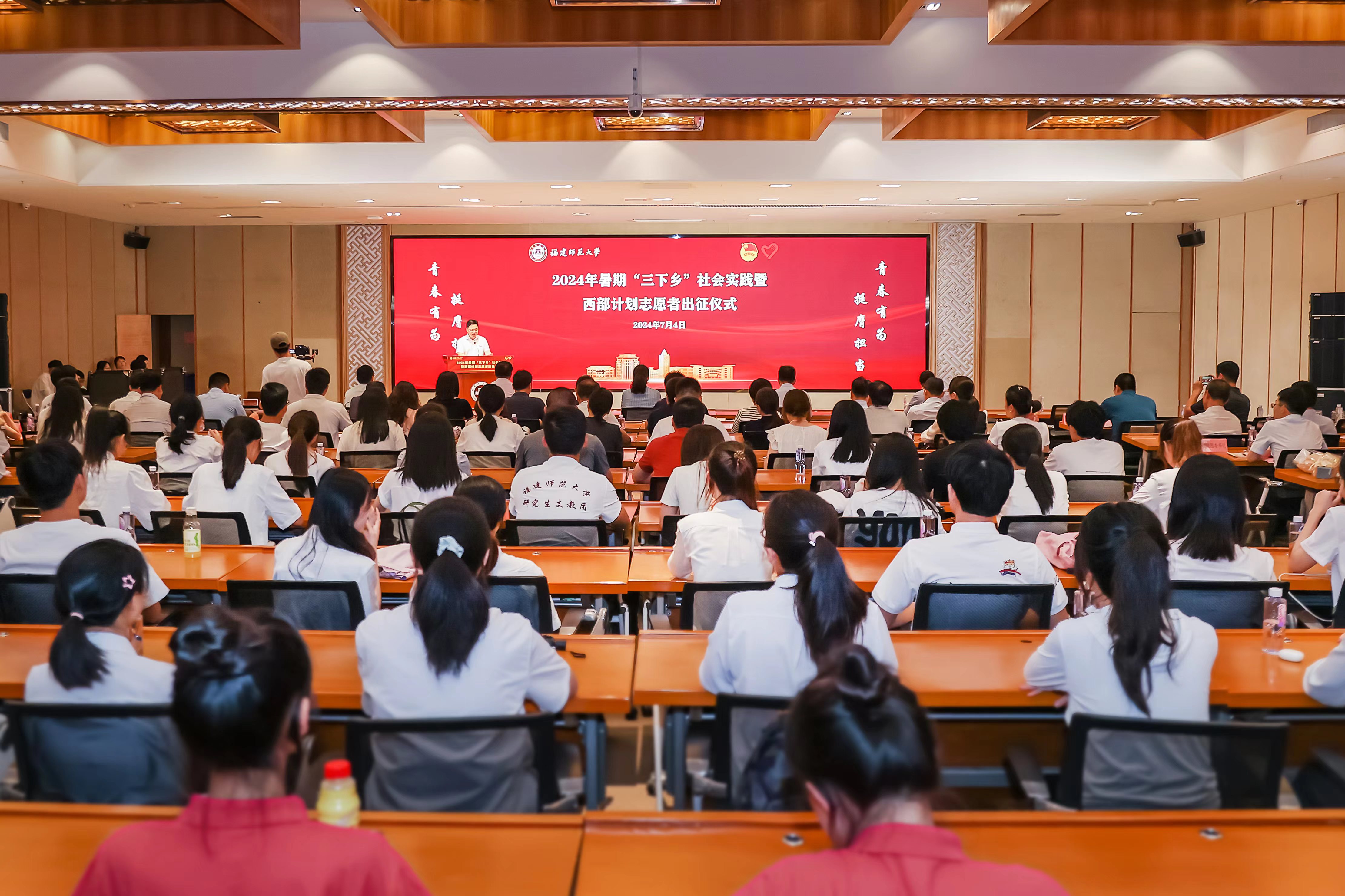仪式于7月4日在旗山校区宏达厅举行,校党委副书记陈晓红,宣传部、学生工作部、教务处、研究生院、校团委负责人,各学院分管学生工作负责人、团委负责人、社会实践队及西部计划志愿者代表参加。
