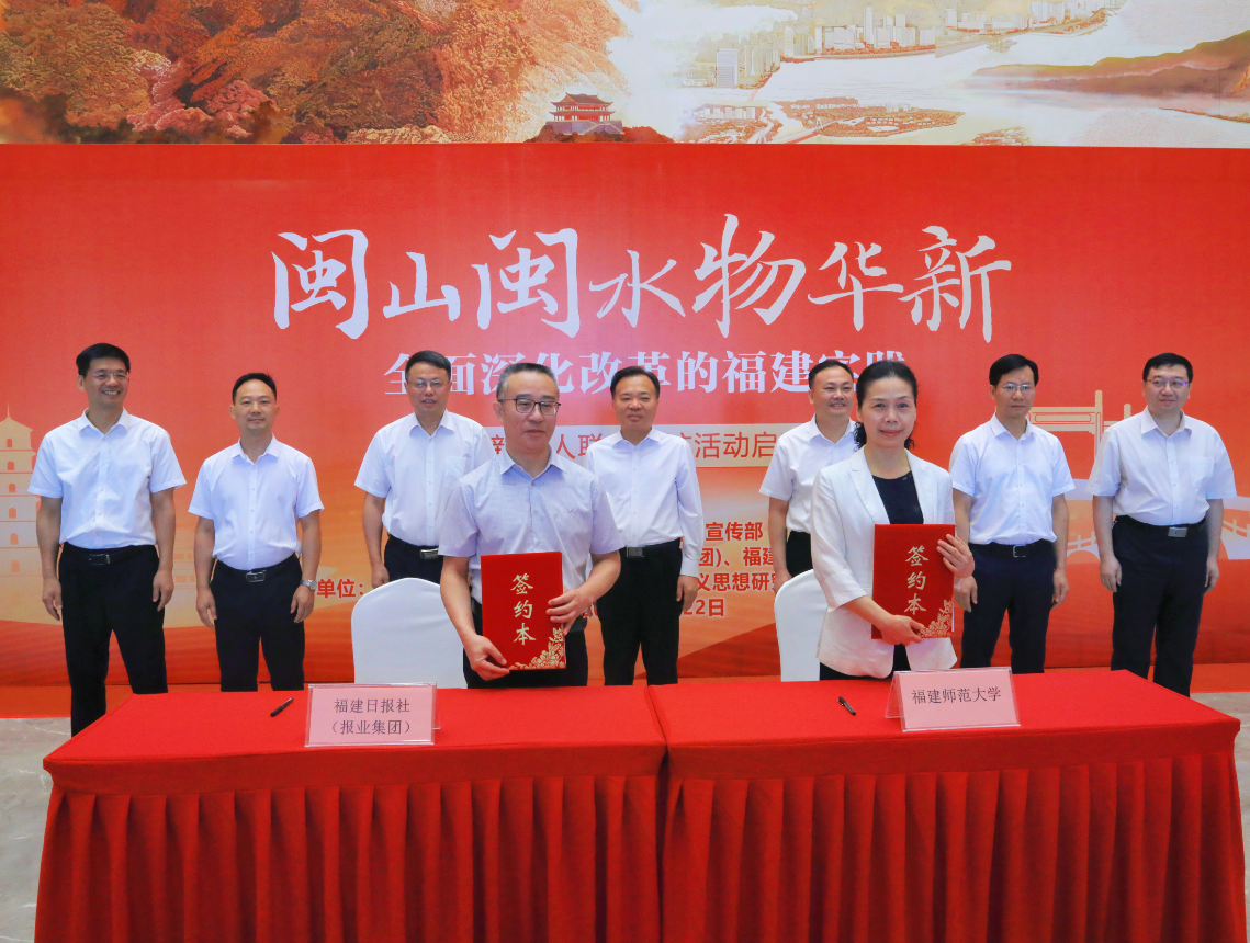 启动仪式上,福建日报社(报业集团)党组书记、社长陈辉宗和潘玉腾为舆情智库研究室、人才培养实训基地揭牌;福建日报社(报业集团)党组成员、副社长吴孝武与陈晓红签订战略合作协议;与会领导共同为青年新闻人代表颁赠图书《闽山闽水物华新——习近平福建足迹》;拼搏(中国)传播学院学生作为青年学子代表在仪式上发言;青年新闻人在讲解员带领下参观了“3820”战略工程实施30周年成就展。