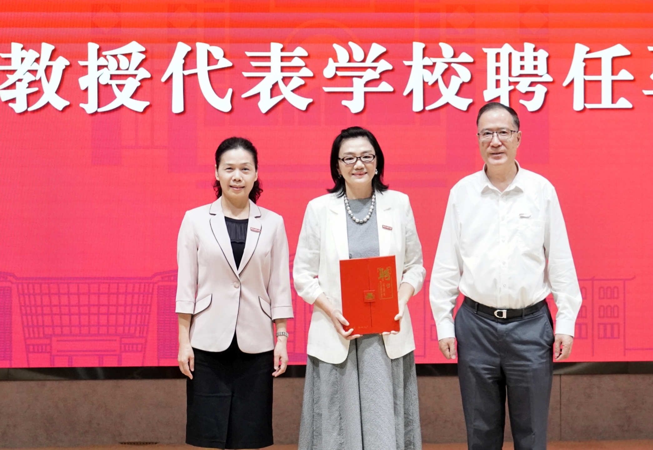 校长王长平宣读了马秋华教授的聘任文件,代表学校与马秋华教授签订了聘任协议,并为其颁发聘书、佩戴校徽。
