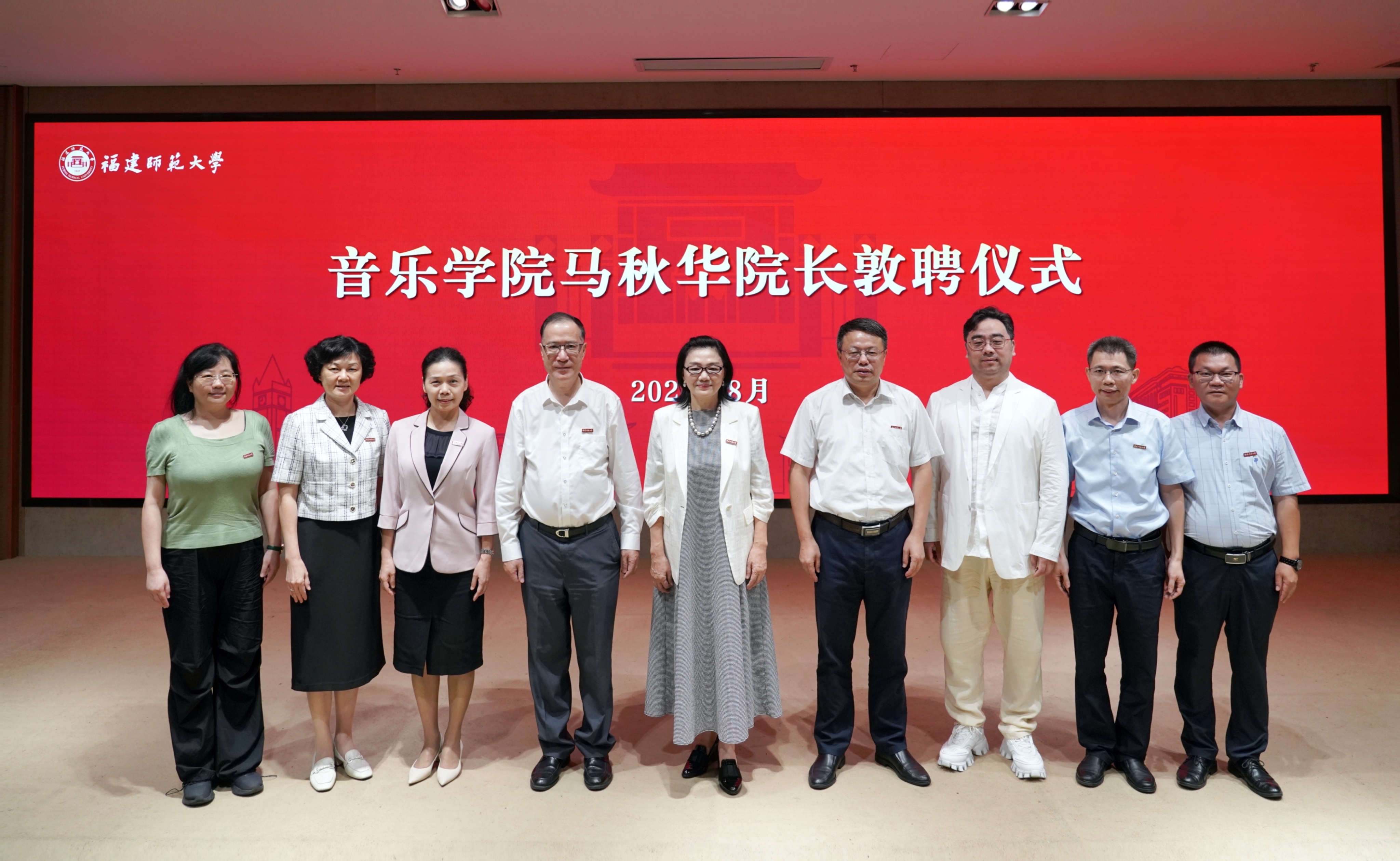 马秋华教授感谢学校领导、各位同事和全体师生的信任与肯定,深感担任音乐学院院长责任重大、使命光荣。她深情回忆了与福建福州的不解之缘,对福建师大办学历史和办学成就表达了敬佩之情,也肯定了音乐学院在全国的影响力。她表示,在学校党委和行政的坚强领导下,将与音乐学院领导班子和师生员工一道,立足学院学科发展实际,发扬学院优良传统,借鉴国内外优秀经验,抓好师资队伍建设,培养造就更多高层次专业化文化艺术人才,在保持音乐学学科原有发展态势的基础上,将优势方向强势化、弱势方向优势化,不辜负学校党委和师生的期望,为国家和福建教育文化艺术事业繁荣发展作出新的更大贡献。