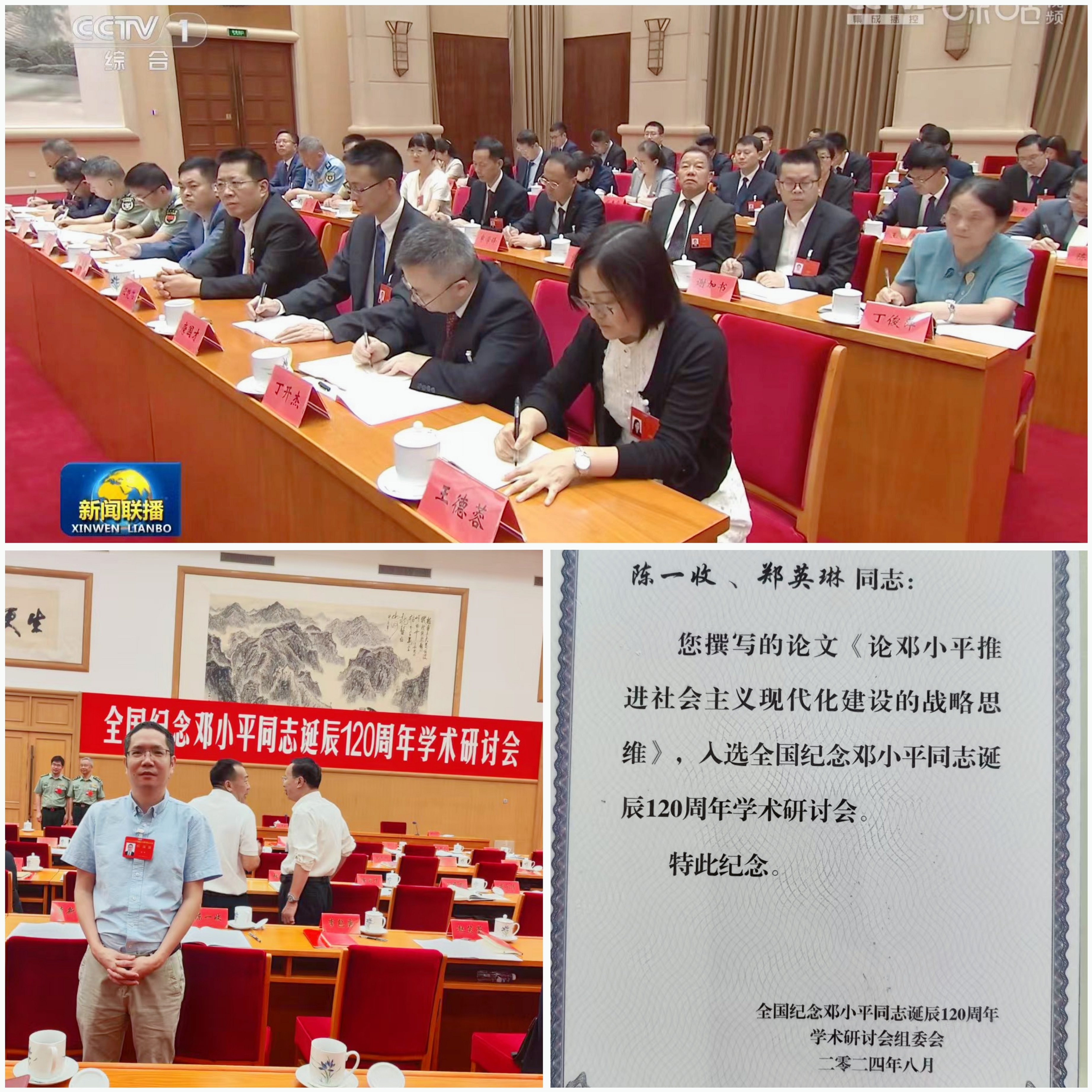 8月22日至24日,全国纪念邓小平同志诞辰120周年学术研讨会在北京举行,中共中央政治局常委、中央书记处书记蔡奇出席开幕式并讲话。研讨会由中央宣传部、中央党校(国家行政学院)、中央党史和文献研究院、教育部、中国社会科学院、中央军委政治工作部举办。来自全国各地150多位专家学者参会并作学术交流。本次研讨会入选论文100余篇,集中反映了近年来邓小平生平和邓小平理论研究成果,拼搏(中国)马克思主义学院陈一收教授的论文《论邓小平推进社会主义现代化的战略思维》入选研讨会,是福建省唯一入选的论文。