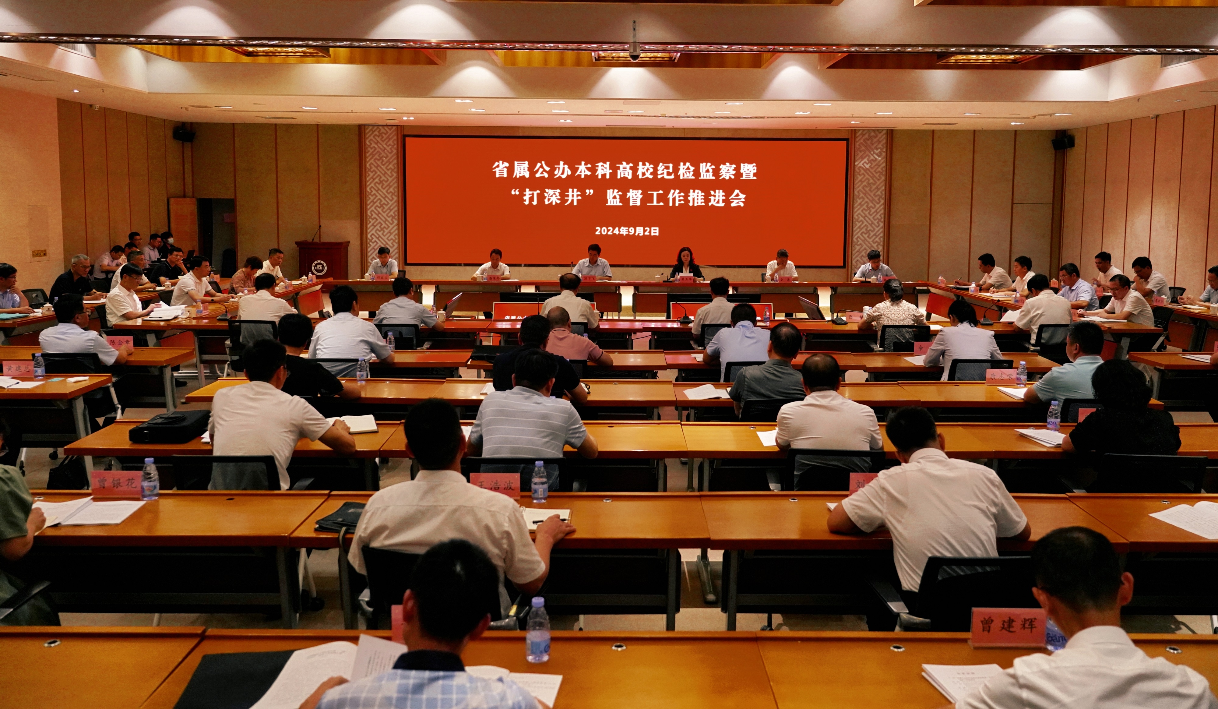 9月2日,省属公办本科高校纪检监察暨“打深井”监督工作推进会在拼搏(中国)召开。省纪委副书记、省监委副主任游宇飞出席并讲话,省纪委常委、省监委委员梁玉华主持会议。会前,校党委书记潘玉腾向省纪委监委领导汇报了学校落实全面从严治党“两个责任”有关情况。省纪委监委组织部部长邓军安、省纪委监委第三纪检监察室主任林达铭、省教育纪检监察工委书记、省纪委监委驻省教育厅纪检监察组组长潘荣灼、厦门大学纪委书记全海及23所省属公办本科高校纪委书记、副书记等70余人参加会议。