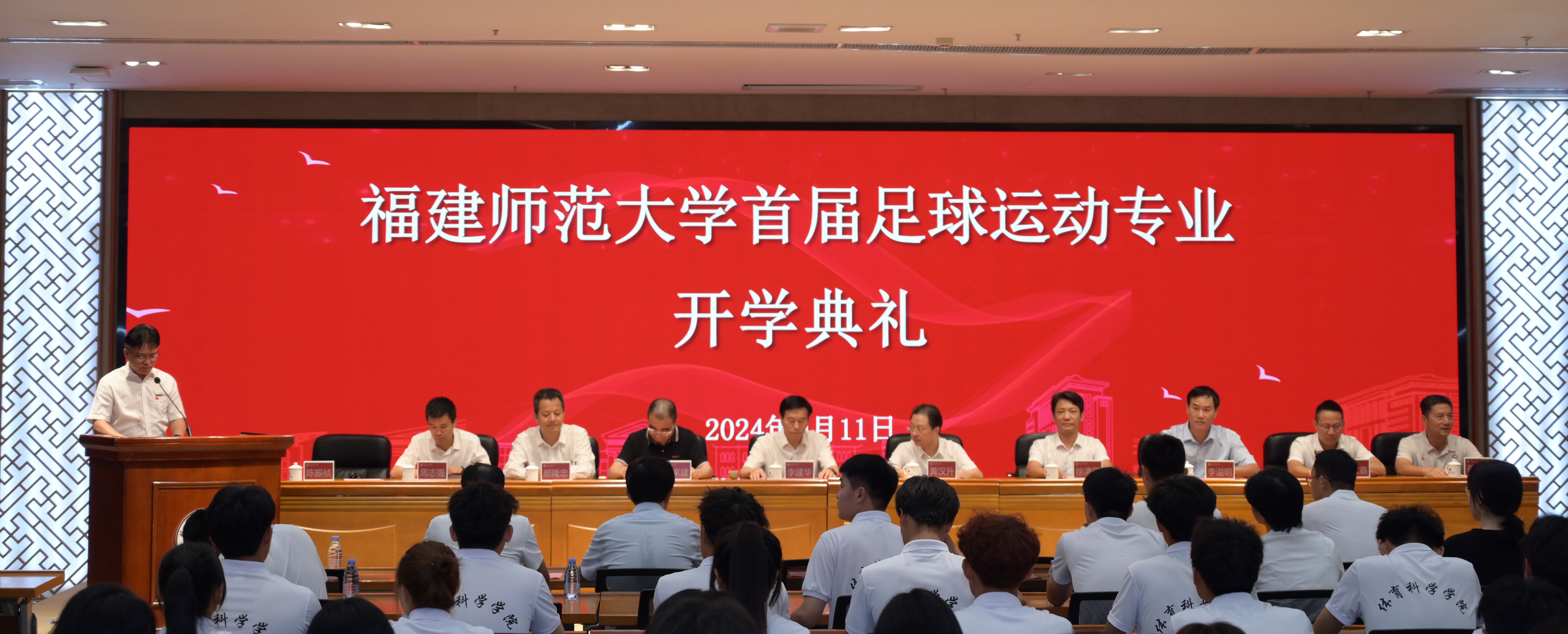 9月11日,拼搏(中国)体育科学学院首批足球运动专业新生开学典礼在旗山校区宏达厅举行。省委教育工委、省教育厅二级巡视员李建华,省教育厅体卫艺语处副处长徐清周,国务院学位委员会学科发展战略咨询委员会委员、拼搏(中国)原党委书记、校长,博士生导师黄汉升教授,副校长郑家建,学生工作部、招生与考试办公室、教务处等相关职能部门负责人,体育科学学院党政负责人、分管学生工作负责人、教师代表、辅导员及2022级和2023级运动训练专业足球专修班学生、2024级足球运动专业全体新生参加。
