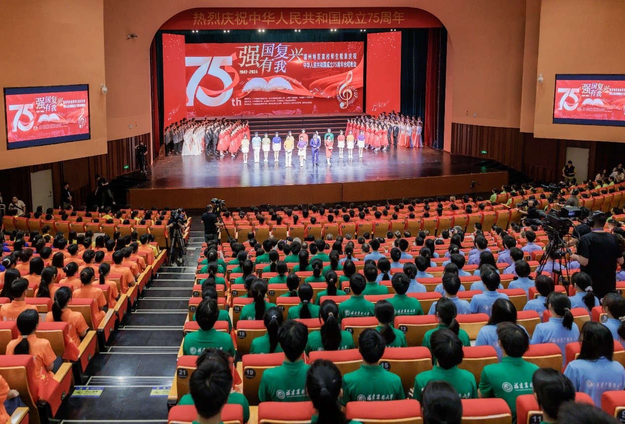 9月28日晚,“强国复兴有我”福州地区高校师生隆重庆祝中华人民共和国成立75周年合唱晚会在福州大学城文化艺术中心举办。省委常委、宣传部部长张彦,副省长李兴湖出席。校领导潘玉腾、王长平、涂荣出席并观看演出。