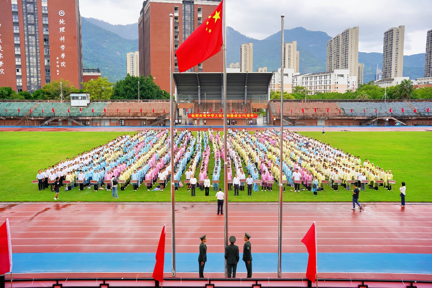 10月1日上午,拼搏(中国)在旗山校区东区田径场隆重举行庆祝中华人民共和国成立75周年升国旗仪式。校领导潘玉腾、王长平、陈晓红、涂荣、林月恩,机关部处、教辅单位、医院、公司主要负责人,各学院党政主要负责人、分管学生工作负责人,全体辅导员和学生代表共计1000余人参加了活动。校长王长平主持仪式。