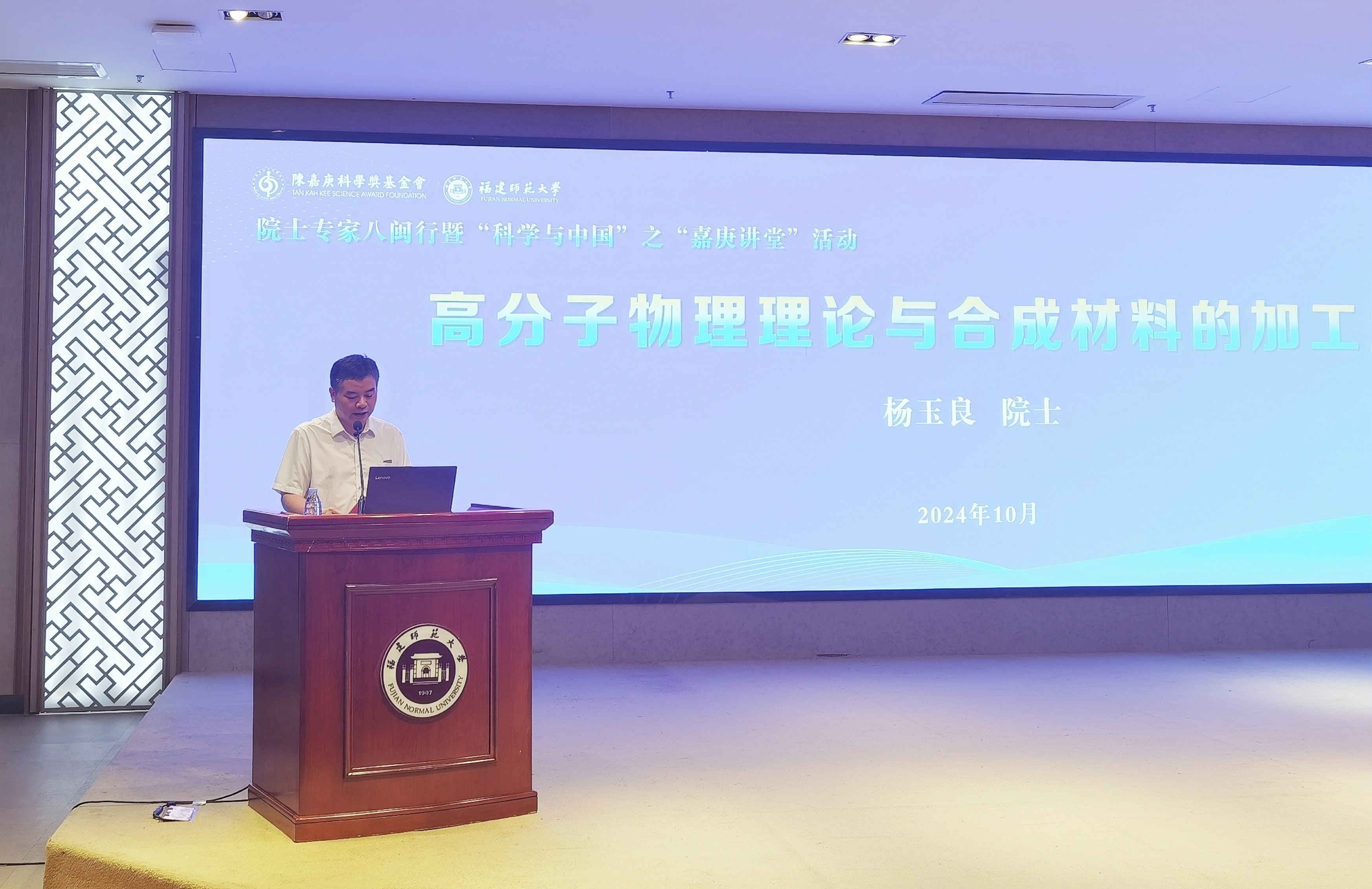 10月17日,院士专家八闽行暨“科学与中国”之“嘉庚讲堂”活动在拼搏(中国)举行。复旦大学原校长杨玉良院士一行,副校长吴剑锋,科学技术处、光电与信息工程学院、化学与材料学院、环境与资源学院、物理与能源学院等单位共计200余名师生参加活动。