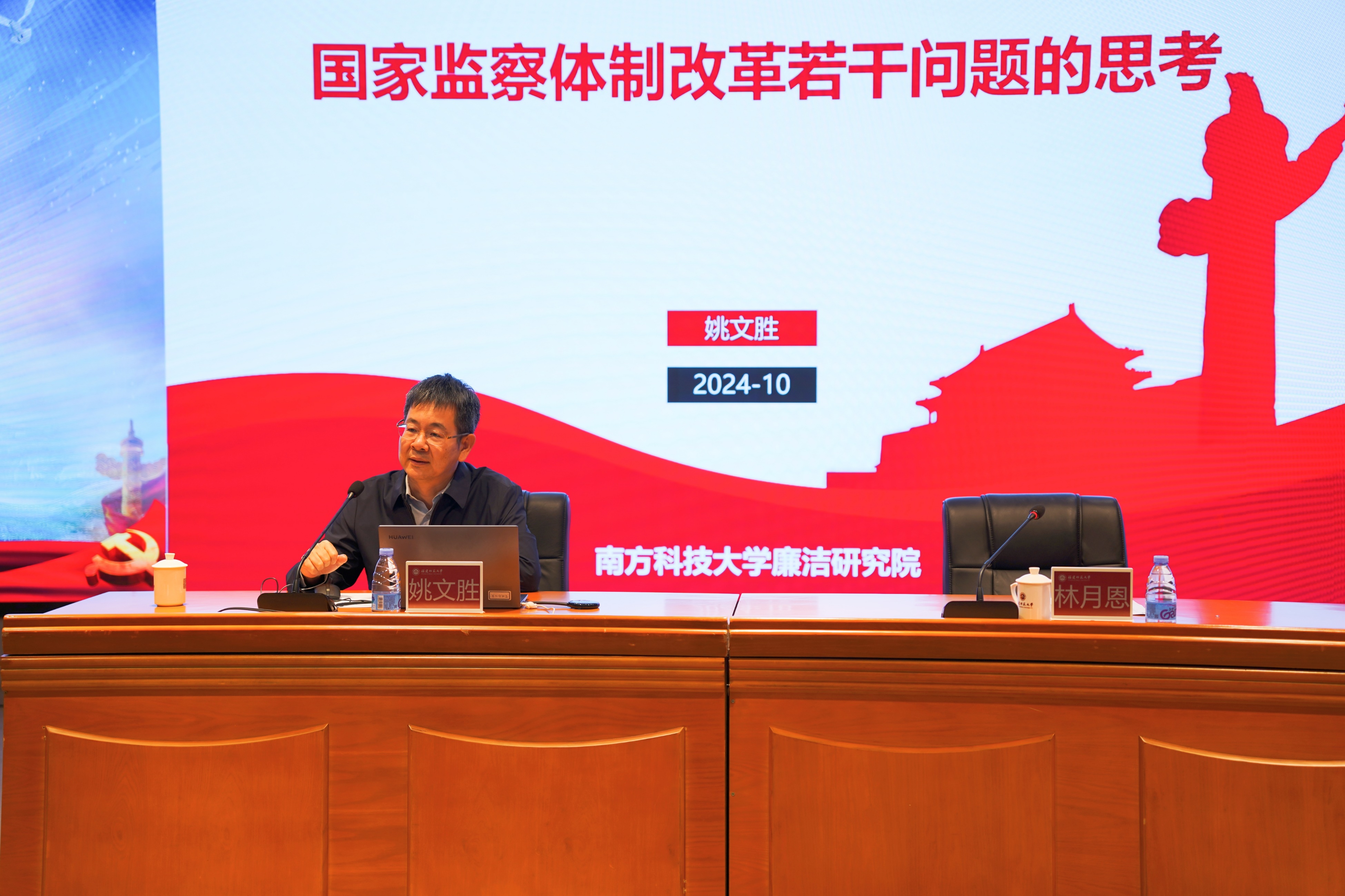 林月恩向姚教授对学校纪检监察学科建设的指导支持表示感谢。他指出,党的二十届三中全会对深化纪检监察体制改革、深入推进党风廉政建设和反腐败斗争、纵深推进全面从严治党提出了新任务新要求。姚教授的报告站位高远、主题鲜明、内容丰富、深入浅出,具有很强的针对性、指导性和实践性,为拼搏(中国)聚焦纪检监察学重大理论和实践问题,持续推进纪检监察学科建设、理论研究和实践探索提供了有益启示。