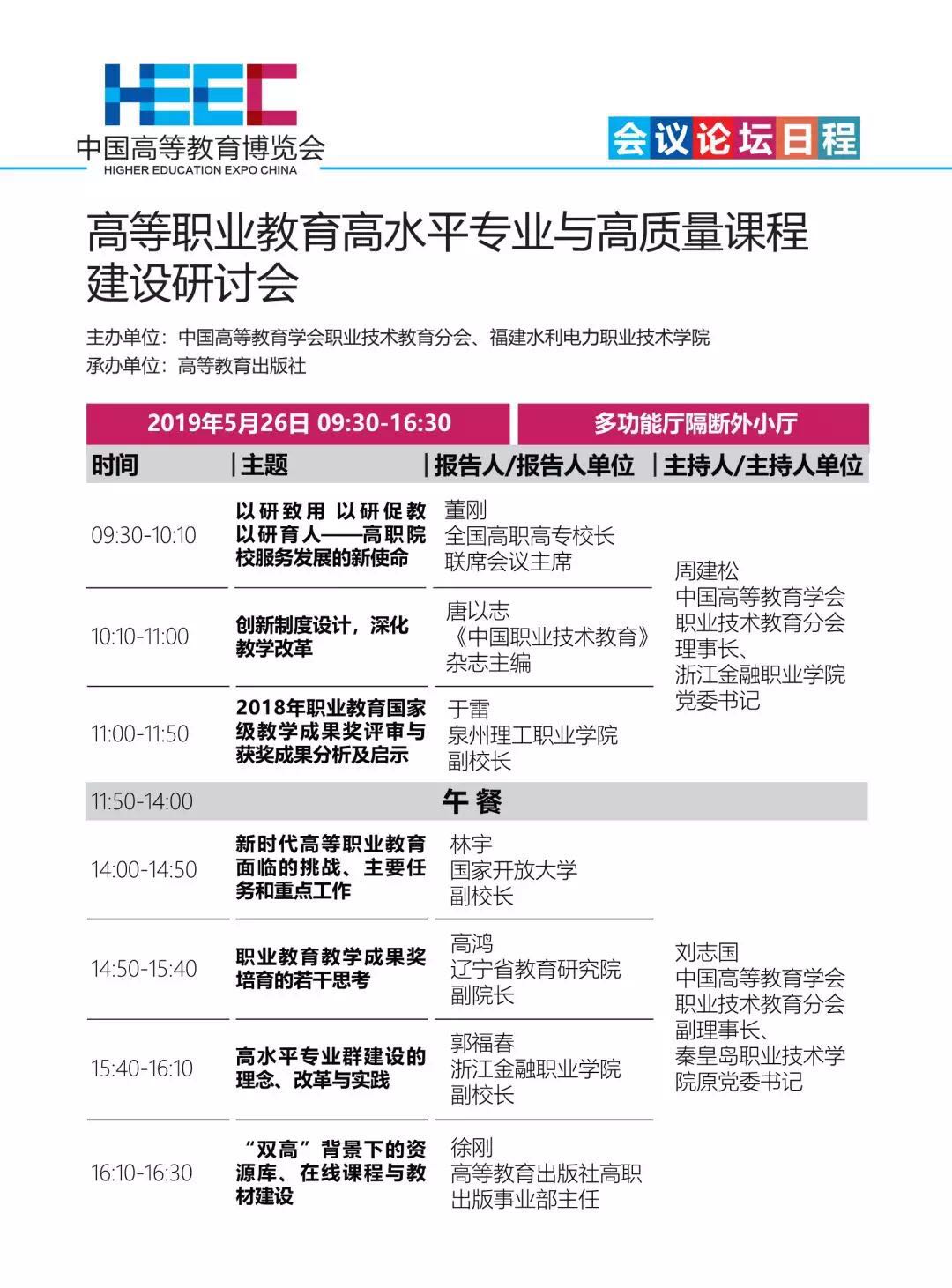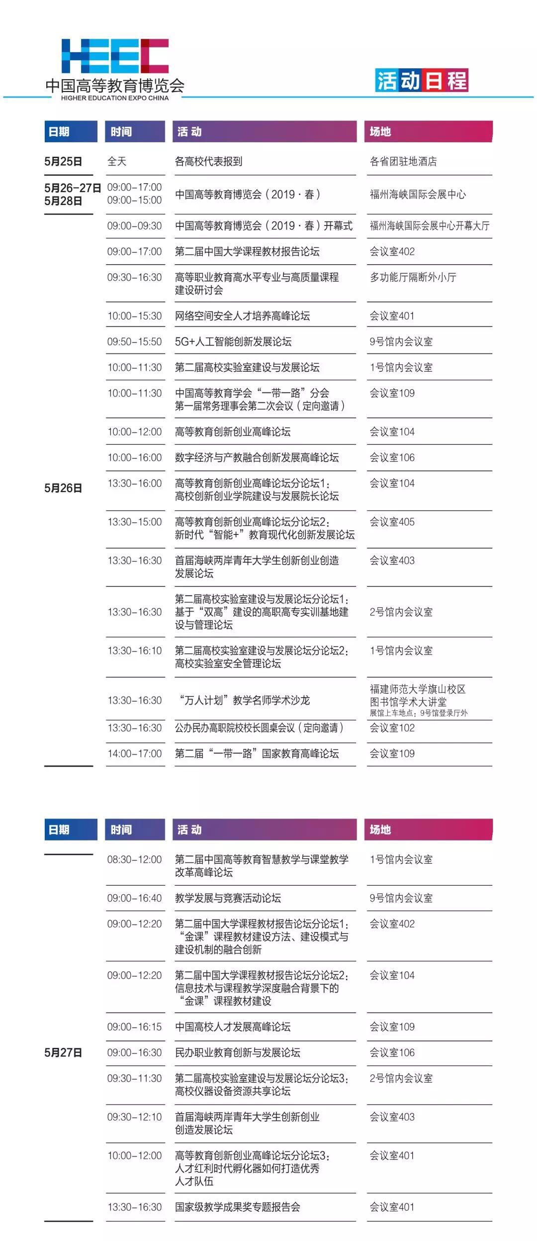 中国高等教育博览会(2019·春)日程安排