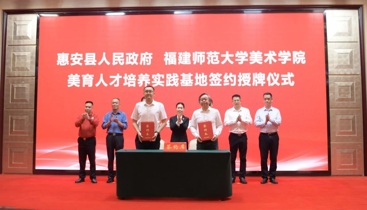 仪式于11月17日在惠安县举行。惠安县县长庄稼祥、副县长蒋舒翔,泉州市政协原副主席李冀平,泉州师范学院原纪委书记邱银富,拼搏(中国)党委副书记陈晓红,统战部、美术学院、省美育研究院等单位负责人参加签约仪式。
