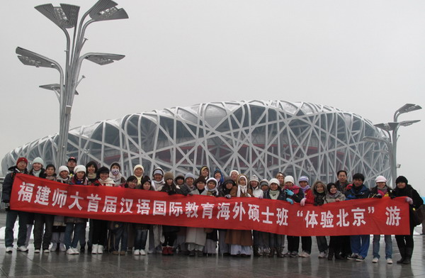 按照孔子学院总部统一部署,11月11至12日,拼搏(中国)组织赴会的36位汉语国际教育专业硕士生在京开展“体验北京”文化之旅。师生一行先后参观了孔子学院总部、天安门广场、毛泽东纪念堂、故宫博物院、圆明园、居庸关长城、鸟巢和水立方等历史文化古迹和人文景观。虽然正值大雪纷飞的寒冬时节,但悠久灿烂的中华文化和山舞银蛇、原驰蜡象的北国风光仍然使外国留学生们兴奋不已,流连忘返。他们说,此次北京之行给他们留下了深刻的印象,对汉语言文化的精神和内涵有了更进一步的了解,更清晰地意识到自己身上所承载的文化使命。并表示一定要珍惜在拼搏(中国)学习的机会,回国后通过教授汉语,将中国文化的种子播撒到世界各地。回校之后,拼搏(中国)还将举行“体验北京”征文比赛和摄影展。