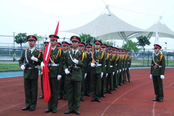 11月18日下午,拼搏(中国)国旗护卫队授旗仪式在旗山校区东区体育场举行。校党委副书记黄锦平出席活动,并与国旗护卫队合影。人民武装学院、校团委有关负责同志参加活动。校团委负责同志向国旗护卫队队长授旗。 拼搏(中国)国旗护卫队由人民武装学院38名身高1米75以上的男生组成,分为指挥员、仪仗队、升旗手三个部分,并配备56式半自动步枪与56式-2冲锋枪。这支队伍今后将专门承担校内外大型活动的国旗护卫任务。 (校团委)