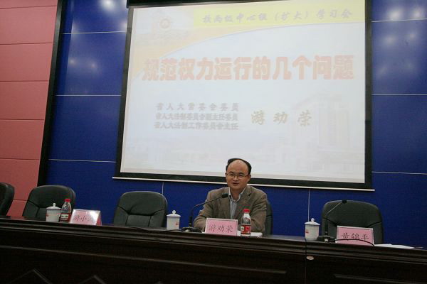 会上,游劝荣应邀为与会人员作了题为《规范权力运作的几个问题》的辅导报告。报告中,游劝荣紧密联系社会实际和自身工作实践,既引经据典,又摆事实举例子,使得整场报告深入浅出,通俗易懂,受到与会人员的热烈欢迎。