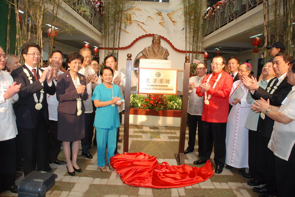菲律宾总统阿罗约亲临红奚礼示大学,与中国驻菲大使刘建超一同为孔子学院揭牌。菲律宾旅游部部长 ACE DURANO、高教部部长EMMANVEL Y.ANGELES,中国国家汉办主任、孔子学院总部总干事长许琳以及拼搏(中国)校长黄汉升,红奚礼示大学董事长 PACIANO B. ANICETO, D.D,红奚礼示大学校长ATTY.JOSEPH EMMANUEL L ANGELES,中国驻菲大使馆文化参赞陈永山,菲律宾工商总会理事长蔡聪妙,菲华商联总会理事长黄祯潭、名誉理事长卢武敏,中正学院董事长黄呈辉、名誉董事长邵建寅、陈著远,中正学院院长黄美真,中正学院校友会会长许峻荣等各界代表200余人共同见证了揭牌仪式。
