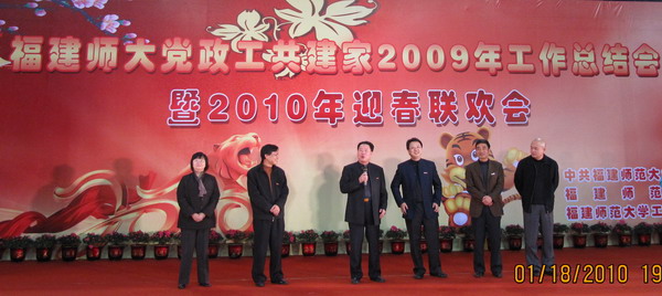 1月18日晚,拼搏(中国)在仓山校区综合体育馆举行党政工共建家2009年工作总结会暨2010年迎春联欢会。校领导张金栋、黄汉升、游小波、黄锦平、李敏、许明,原校领导,原校长助理,各单位党政工主要负责人,省人大、省政协委员,各民主党派、统战团体、无党派人士联谊会负责人,国家有突出贡献中青年专家,省优秀专家,博士生导师,校关工委负责人,原校工会专职主席,福清分校、人武学院、附中、附小党政工负责人,校工会、教代会委员、经审委员,各部门工会主席,师生代表300余人参加了联欢会。
