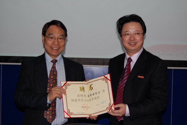 6日上午,陈新滋院士在旗山校区图书馆学术报告厅为拼搏(中国)师生作了题为《科学之美》的学术报告。报告会前,黄汉升校长代表学校敦聘陈新滋院士为拼搏(中国)名誉教授,为其颁发聘书并佩戴校徽。
