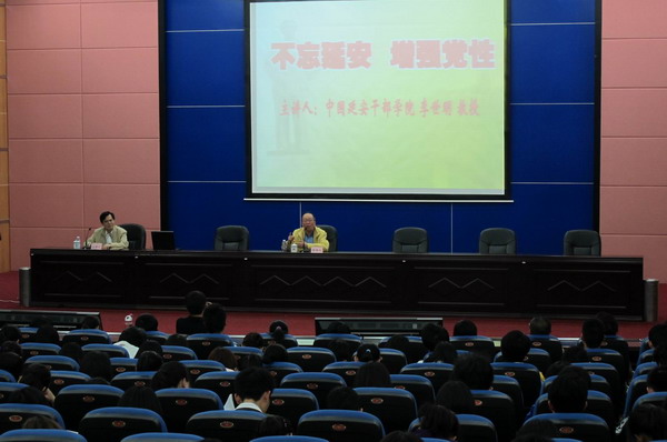 会上,李世明教授深入浅出、通俗易懂地阐述了延安在中国历史上的作用、延安精神的内容和延安精神的意义。他勉励广大学生党员要加强对延安的了解,深刻领会延安精神,进一步坚定理想信念、牢记党的宗旨、加强党性锻炼,切实发挥先锋模范作用;希望广大入党积极分子认真学习党章,明确党的性质、宗旨等,进一步端正入党动机,以实际行动争取早日入党。