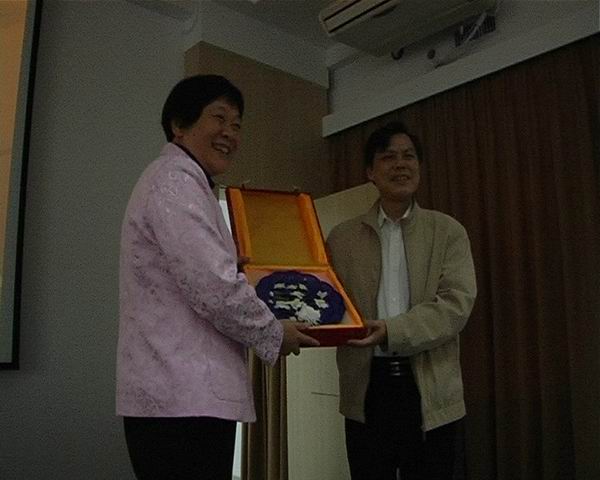 讲座现场,校党委副书记黄锦平、图书馆馆长方宝川和学生代表分别代表学校、图书馆和青年学生接受了