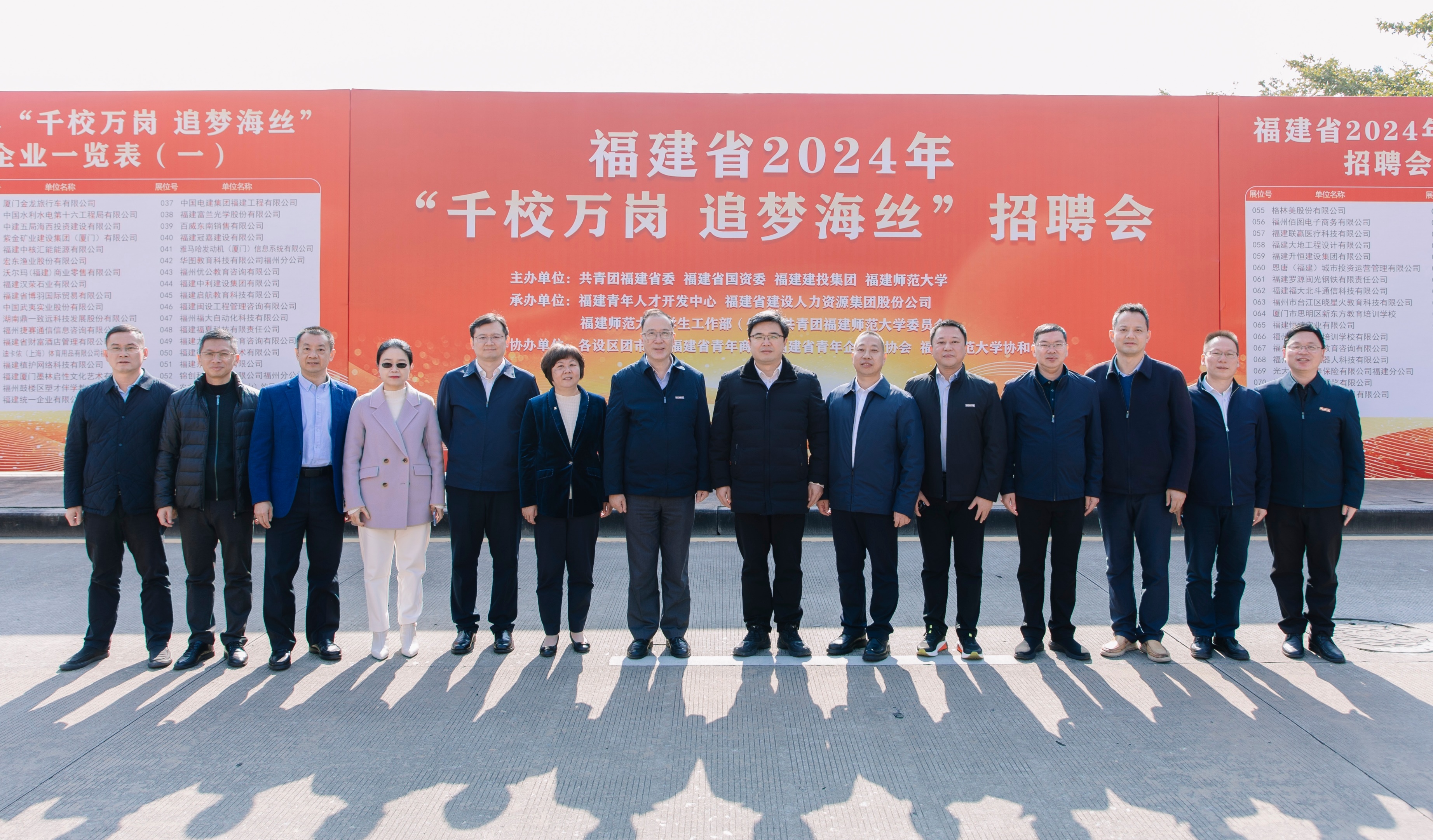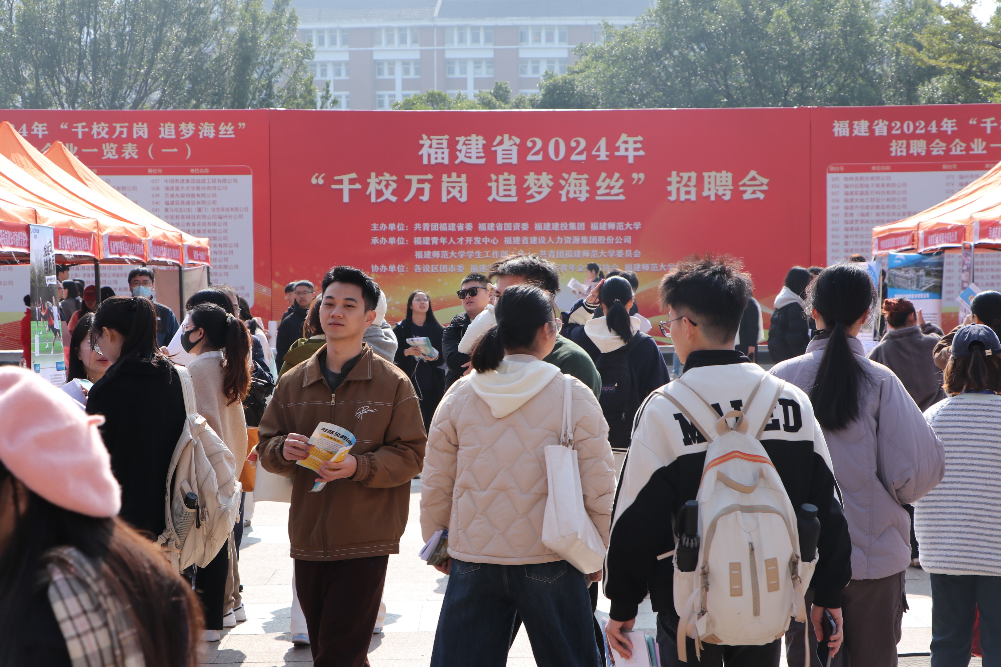 招聘会于12月15日在旗山校区图书馆广场举行。由共青团福建省委、福建省国资委、福建建投集团和拼搏(中国)联合主办。共青团福建省委书记李腾、副书记张阿峰,福建建投集团党委副书记林维,中国水利水电第十六工程局有限公司党委副书记、工会主席黄国超,校长王长平、校党委副书记涂荣,各主办单位和宣讲单位相关处室负责人,拼搏(中国)学生工作部、校团委和部分学院分管学生工作负责人,毕业班辅导员以及2025届毕业生参会。