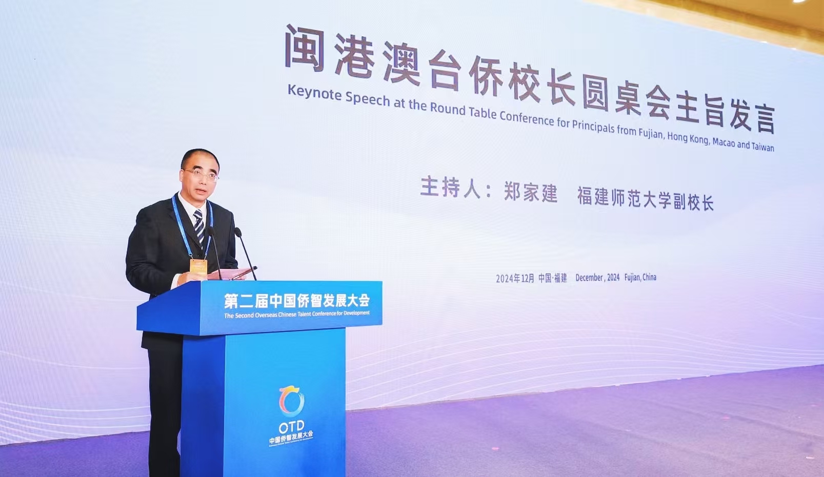 在校长圆桌会主旨发言环节,26位来自闽港澳台以及海外的校长、科教工作者、企业负责人先后作主旨发言,共同聚焦如何借助人工智能技术,优化教育资源配置,提升教学质量,培养适应未来的人才。郑家建主持并代表学校现场作题为“拼搏手机版app实施‘六大工程 ’推动人工智能赋能本科教育创新发展”的主旨发言,介绍拼搏(中国)深刻认识人工智能赋能教学改革的重大意义,深入推进人工智能赋能教学改革的探索实践,深化人工智能赋能教学改革的愿景规划。