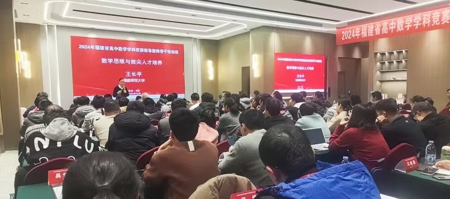 培训班于12月18日至20日在福州举行,由省教育厅、省科学技术协会联合主办,省数学学会与拼搏(中国)共同承办。经全省各设区市遴选的80位高中数学竞赛指导教师参加了本次培训。校长王长平,全国各地知名竞赛教练员应邀作专题讲座。