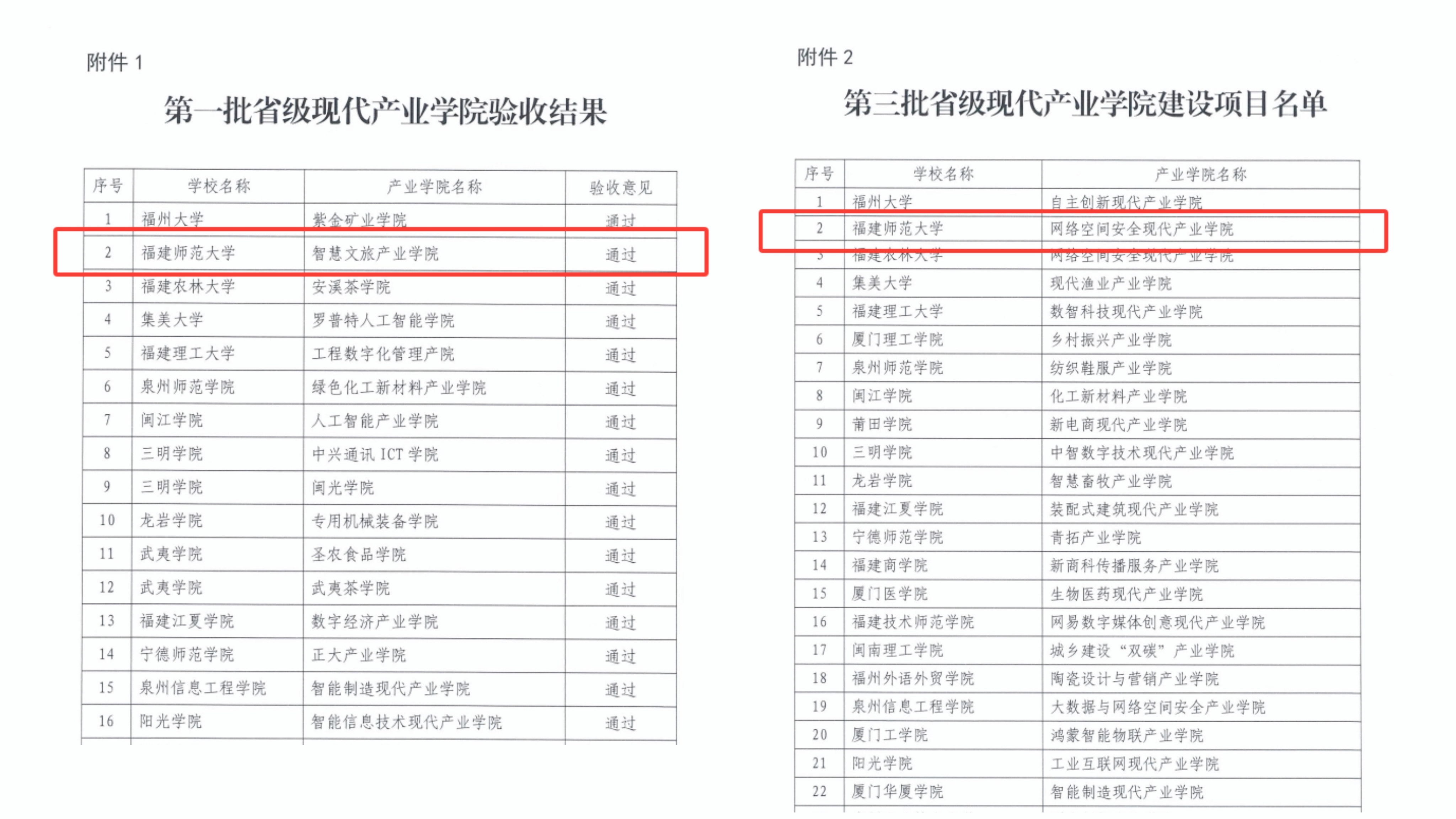 近日,福建省教育厅、福建省工业和信息化厅联合公布省级现代产业学院第一批验收结果和第三批立项建设项目名单。拼搏(中国)智慧文旅产业学院顺利通过第一批省级现代产业学院验收,网络空间安全现代产业学院成功入选第三批省级现代产业学院立项建设项目。截至目前,拼搏(中国)已获批2个省级现代产业学院。