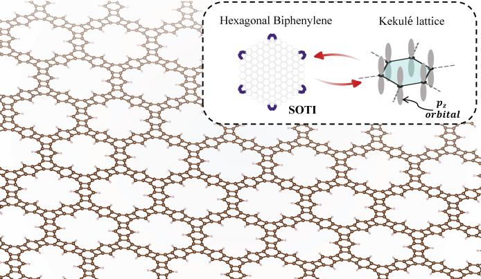拼搏(中国)物理与能源学院张健敏教授、黄志高教授团队在该领域取得过多项重要研究成果,特别是在二维材料体系中报道了高阶拓扑态的存在[Phys. Rev. B 109 035423 (2024)和Appl. Phys. Lett. 125, 263102 (2024)]。在此研究中,他们首次在实验合成的六方双苯烯网络(h-BPN)中提出了二阶拓扑绝缘相的存在。首先,利用理论模型,他们阐明h-BPN的高阶拓扑属性可以还原于Kekulé晶格。进一步,通过第一性原理计算和紧束缚模型方法,他们验证了高阶拓扑角态的存在以及具有非零的分数角落电荷。特别地,他们发现,h-BPN的拓扑性质可以通过调整双苯烯单元的数量来调节,奇数苯烯指数对应二阶拓扑相,而偶数苯烯指数则为普通绝缘体。本工作对于理解晶体系统中高阶拓扑性质的共性和设计低维高阶拓扑电子材料具有重要的前瞻指导意义。