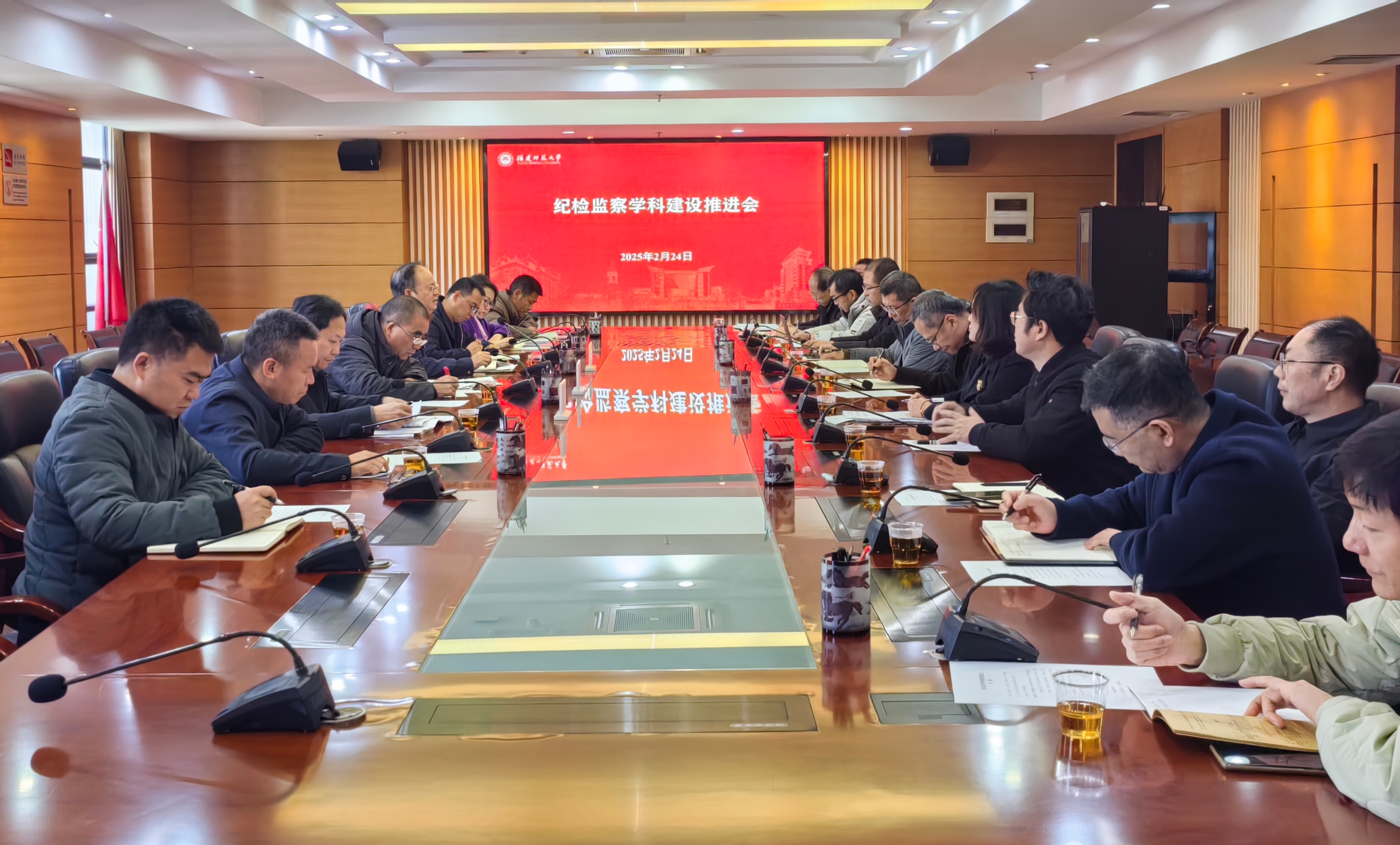 会议于2月24日在旗山校区召开。校长郑家建、纪委书记林月恩、副校长方千华,党政办公室、纪委(监察专员办)综合室、研究生院、发展规划处、人事处、社会科学处、财务处负责人,纪检监察学院、马克思主义学院、文学院、外国语学院、社会历史学院、文化旅游与公共管理学院行政主要负责人和分管科研工作负责人参加会议。会议由方千华主持。