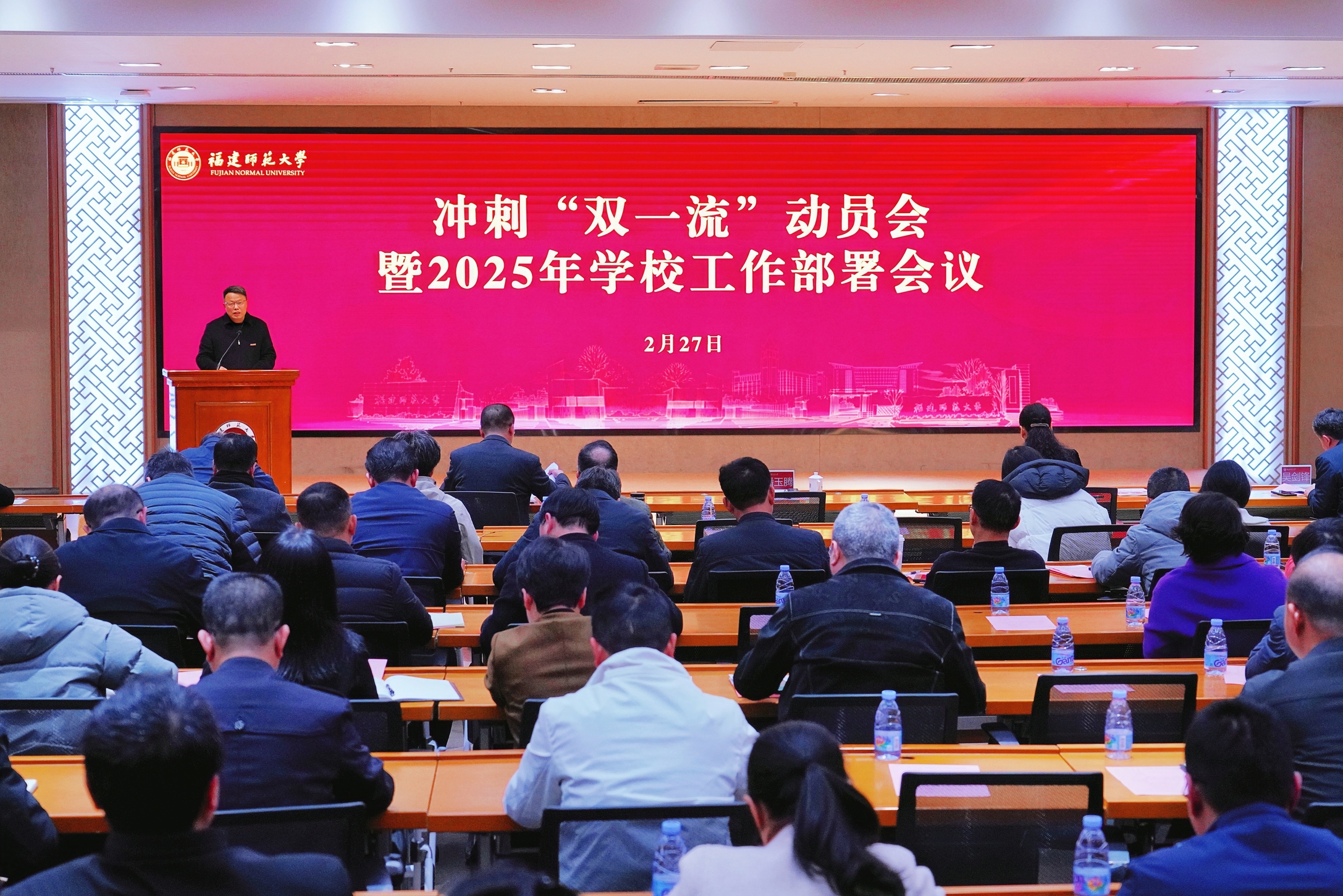 会上,校领导对分管领域2025年重点工作进行具体部署。校长郑家建作了题为《抢抓机遇 凝心聚力 奋勇争先 以新姿态新担当新作为争创“双一流”》的工作报告,报告围绕学校冲刺国家“双一流”建设高校的战略目标,从5个方面分析了国家“双一流”建设的发展态势,明确了争创国家“双一流”的战略方向、突破重点、思路举措和条件保障。他要求全校上下要以冲刺国家“双一流”为目标,按照“问题导向、补齐短板、创新发展、强校升位”的思路,聚焦做优“质量”、做显“特色”、做大“贡献”,以时不我待的紧迫感、只争朝夕的使命感、勇于担当的责任感,深入推动有组织的“双一流”建设,在新征程上作出无负时代、无负历史、无负师生的业绩,为学校冲刺“双一流”贡献我们这一代师大人应有的力量。