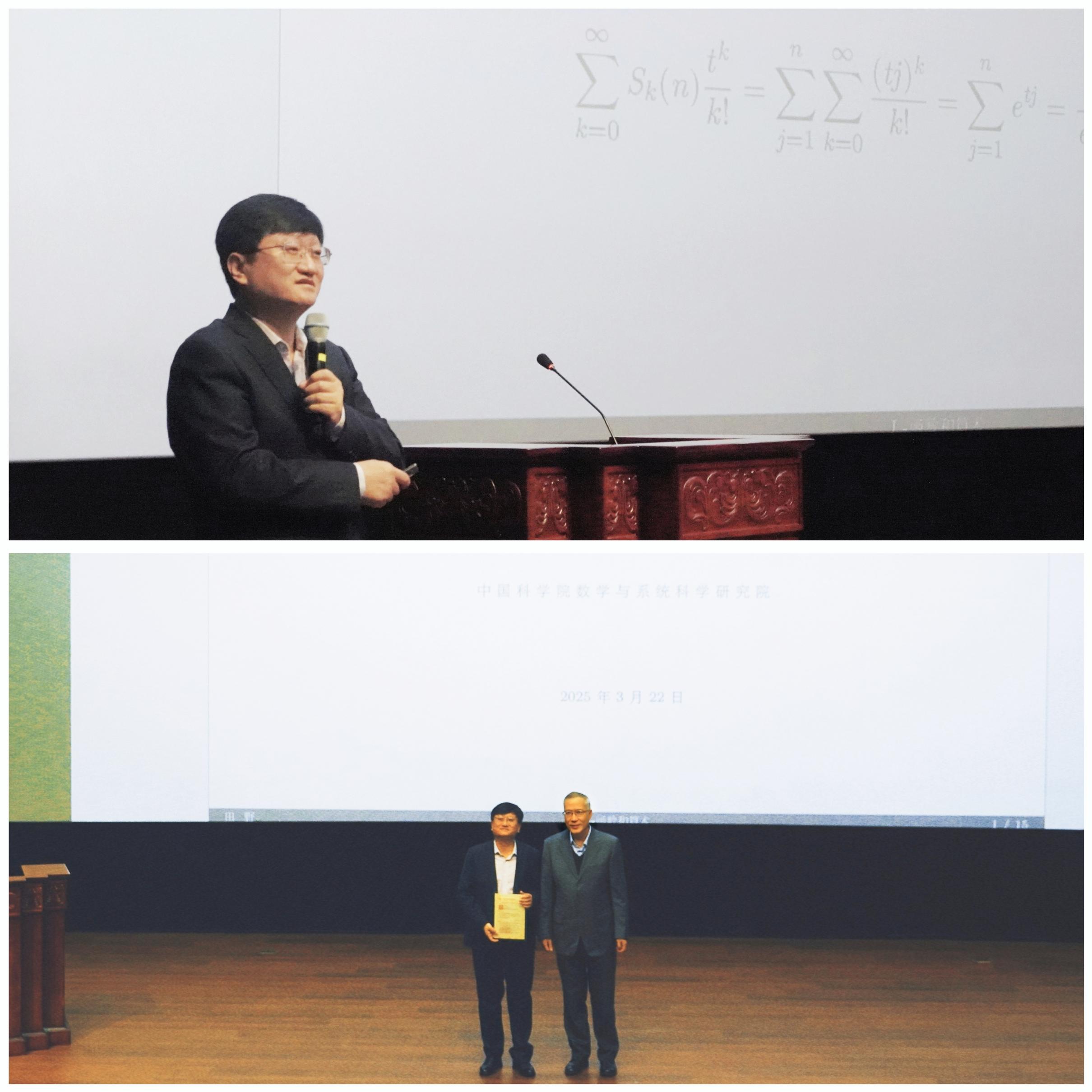 会上,田野院士从费马的几个经典数学问题,引出同余数问题,介绍了欧拉-黎曼zeta函数,素数定理和黎曼假设,椭圆曲线的L-函数以及著名的BSD猜想,其中重点介绍了欧拉和黎曼两位数学家的工作。随后,田野院士从经典的算术问题出发,以通俗易懂的语言向师生们展示了数学各分支的交叉和融合对推动数学发展的重要性,并通过详实的案例分析和清晰的数学推导,为师生呈现了一场兼具专业深度和视野广度的学术盛宴。