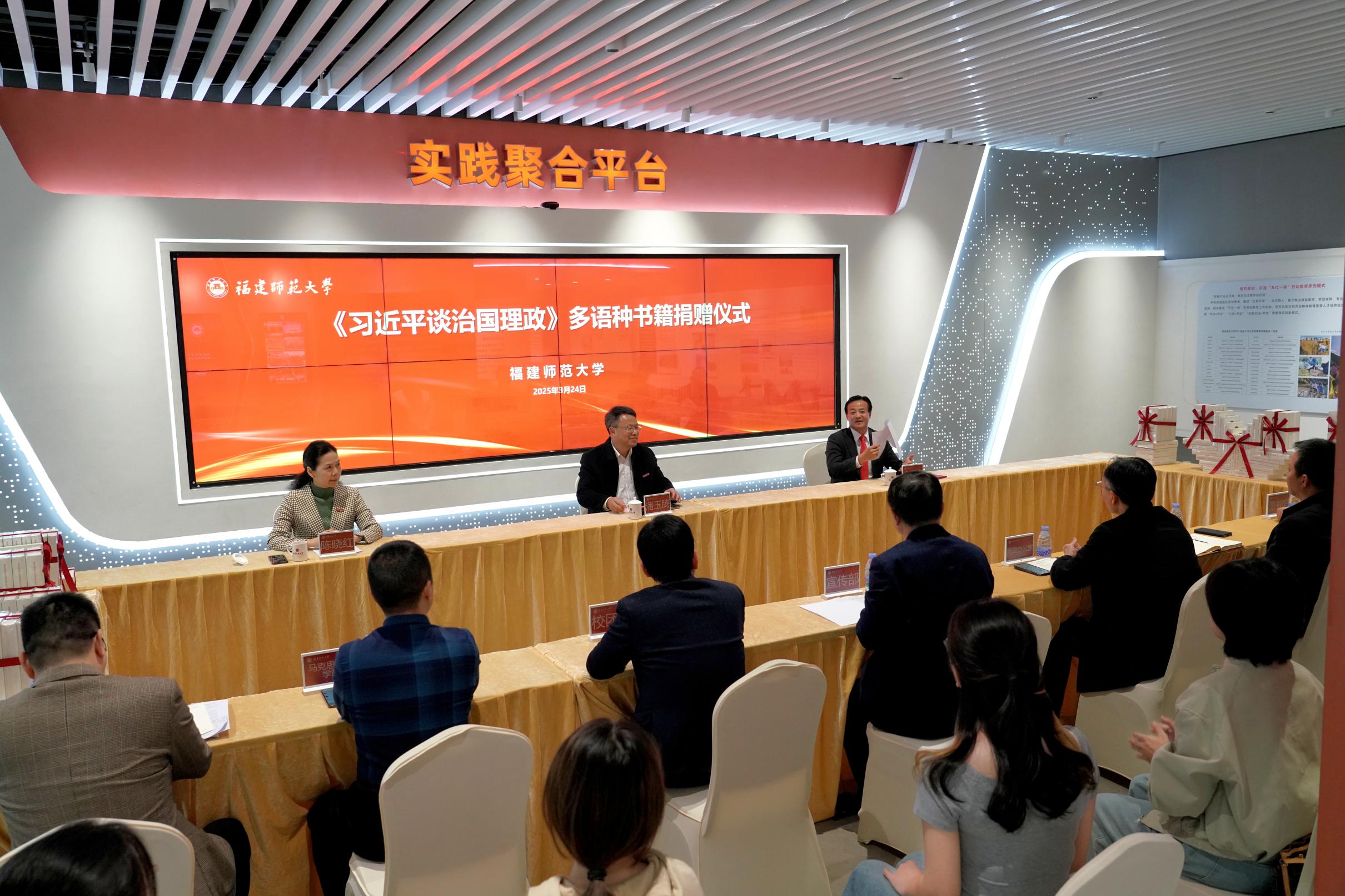 捐赠仪式于3月24日在旗山校区新时代大学生社会大课堂实践中心举行。校党委书记潘玉腾、副书记陈晓红,北京崇学文化发展有限公司负责人余富文,党政办公室、宣传部、学生工作部(处)、校团委、图书馆、马克思主义学院、外国语学院等有关单位负责人,马克思主义学院、经济学院师生代表参加活动。捐赠仪式由陈晓红主持。