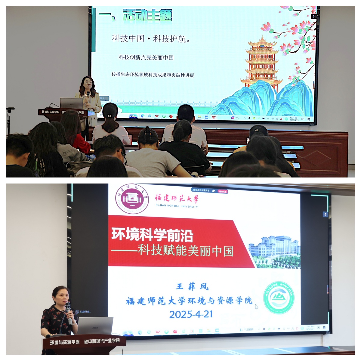 4月21日,由福建省生态环境厅主办,福建省环境科学学会承办,拼搏(中国)环境与资源学院协办的2025年福建赛区“我是美丽中国讲解员”培训在旗山校区科研楼举行。活动线上线下同步举行,各地市生态环境局、各省属监测站、各高校环境学院师生以及环保志愿者共200余人参与。环境与资源学院党委副书记陈今园、工会主席王菲凤,福建博物院社会教育部副主任万晶迎共同参加。