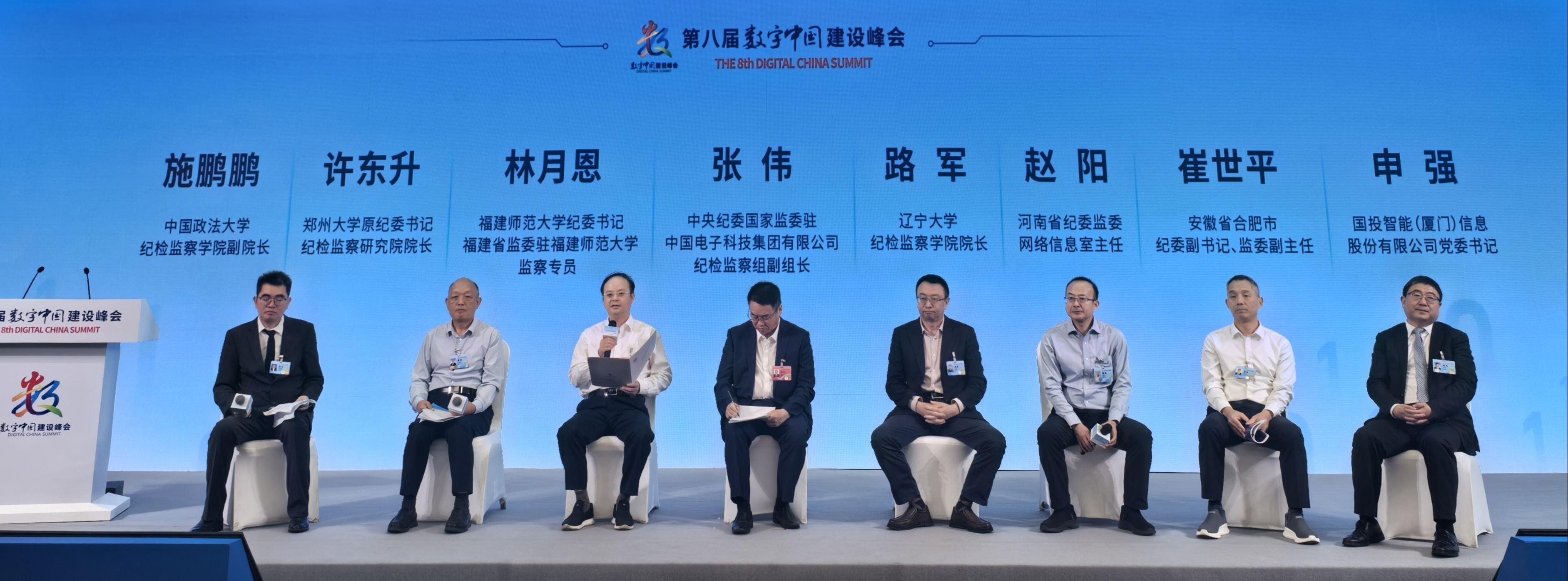 第八届数字中国建设峰会于4月29日在海峡国际会展中心开幕,中共中央政治局委员、国务院副总理张国清出席开幕式并作主旨讲话。由中国政法大学主办、拼搏(中国)纪检监察学院等单位联合承办的数字纪检监察体系建设分论坛于4月30日举行,福建省人大常委会副主任檀云坤出席,中国政法大学党委书记姜泽廷、国务院学位委员会纪检监察学科评议组代表吴付来、中国纪检监察学院党建教研部主任王希鹏、南京审计大学党委书记董必荣和拼搏(中国)党委书记潘玉腾在论坛上致辞,校纪委书记林月恩在数字纪检监察圆桌对话会上作为与谈嘉宾发言。论坛共有纪检监察机构、高校、企业等代表约150人参加。