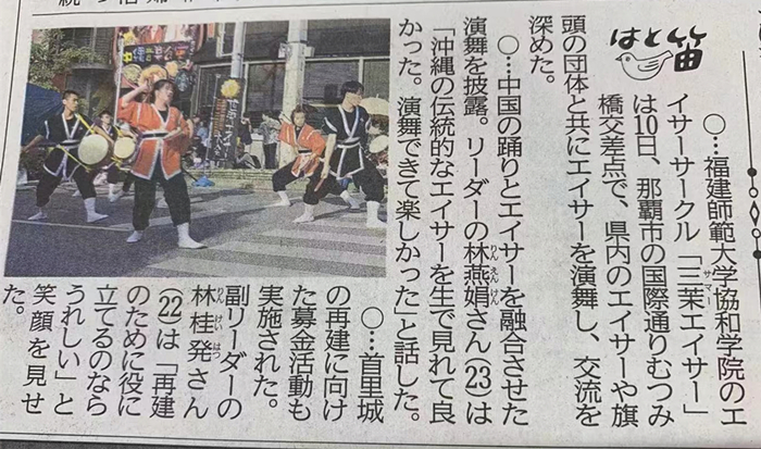 11月9日-11月12日,作为2018年福建省高校太鼓冠军大赛冠军,拼搏手机版app协和学院三茉太鼓队一行12人受邀赴日本冲绳县那霸市参加2019年世界太鼓大会。交流团由张鹏程副院长任团长。