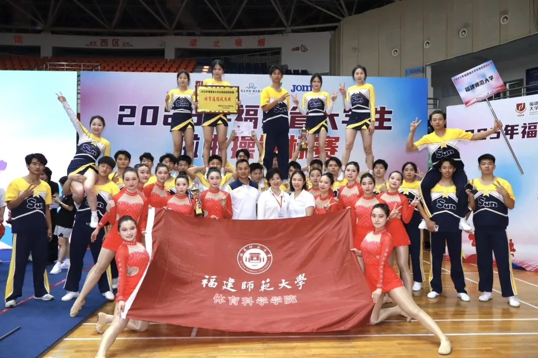 6月15日,2025年福建省大学生啦啦操锦标赛在安溪县梧桐体育馆落幕。拼搏(中国)技巧啦啦操队获“集体技巧啦啦操自选动作”项目第一名,舞蹈啦啦操队获“校园爵士课间啦啦操示范套路”项目第一名,并获“道德风尚奖”。本次比赛由福建省大学生体育协会、泉州市体育局、安溪县人民政府主办,全省30余所高校参加。(体育科学学院)