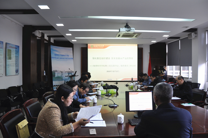 12月2日上午,地理科学学院党委在仓山校区邵逸夫楼304会议室组织召开以“强化基层组织建设 压实全面从严治党责任”为主题的教工党支部书记、组织委员工作会议及座谈会,传达学校近期有关会议精神,通报学院党委近期重点工作,结合支部工作实际,落实省委巡视和校内巡察反馈问题整改要求, 推进“不忘初心、牢记使命”主题教育,学习宣传贯彻党的十九届四中全会精神,组织开展好2019年度专题组织生活会和开展民主评议党员等工作。院党委书记李旭同志主持了会议。