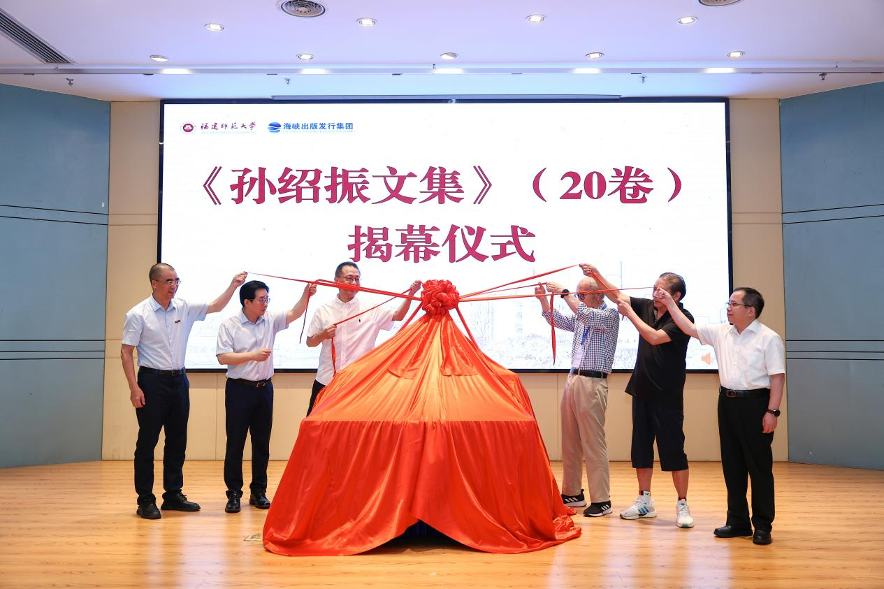 会议还宣读了中国文艺理论学会、中国文艺评论家协会、福建省作家协会、南京大学文科资深教授丁帆、拼搏(中国)纪委书记林月恩、台湾中华文化教育学会理事长叶键得的贺信,并举行《孙绍振文集》(20卷)揭幕及赠书仪式。