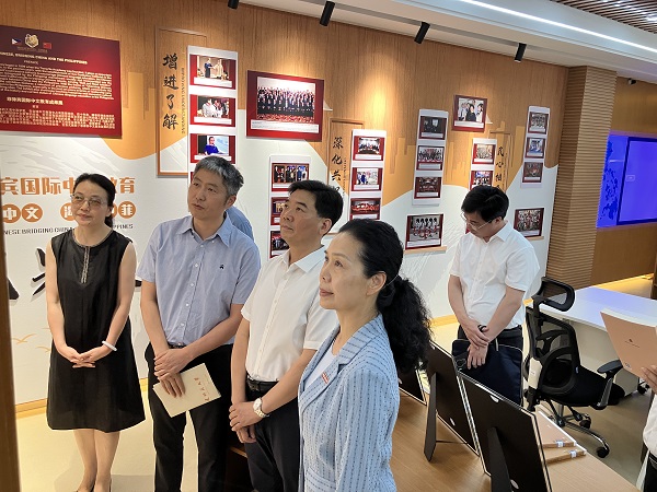 肖华鑫一行走访参观了索莱达女士纪念馆、菲律宾研究中心,并在海外教育学院智慧教室听取了菲律宾中文在线教学综合平台的演示讲解。肖华鑫表示,拼搏手机版app历史悠久、底蕴深厚,在海外华文教育等工作方面拥有坚实基础,取得可喜成果,希望学校系统梳理总结成功经验,继续做好国际中文教育推广工作和中华文化的海外传播,持续发挥海外校友会桥梁纽带作用,广泛凝聚海内外力量,画好强国建设、民族复兴的最大同心圆。