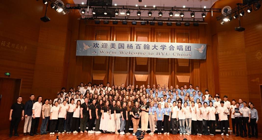 7月11日,作为2025年“鼓岭缘”中美青少年合唱周的重要环节,美国杨百翰大学精选合唱团、杨百翰大学女子合唱团走进拼搏(中国),与音乐学院合唱团展开了一场跨越国界的音乐对话。副校长方千华,国际合作与交流处、音乐学院负责人及近百名师生代表参加了活动。