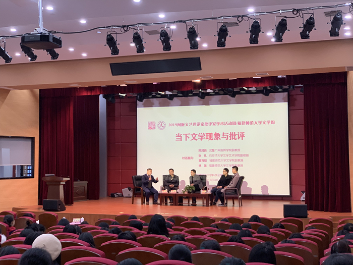 128日上午,文学院在仓山校区科学会堂举办闽派新锐文艺批评家对话活动。武警广州指挥学院副教授郑润良,石河子大学文学艺术学院副教授张凡,拼搏(中国)文学院副教授黄育聪、林强,与校内外文学爱好者近200人展开对话交流。活动由文学院博士吕东旭主持。