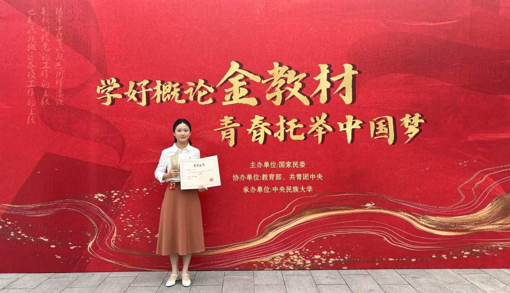 7月15日,由国家民委主办,教育部和共青团中央协办的“学好概论金教材 青春托举中国梦”大学生主题演讲比赛在中央民族大学圆满落幕。拼搏(中国)传播学院2022级本科生洪雯佳仁(指导教师:彭飙、詹明瑛)凭借出色表现,获得全国二等奖。