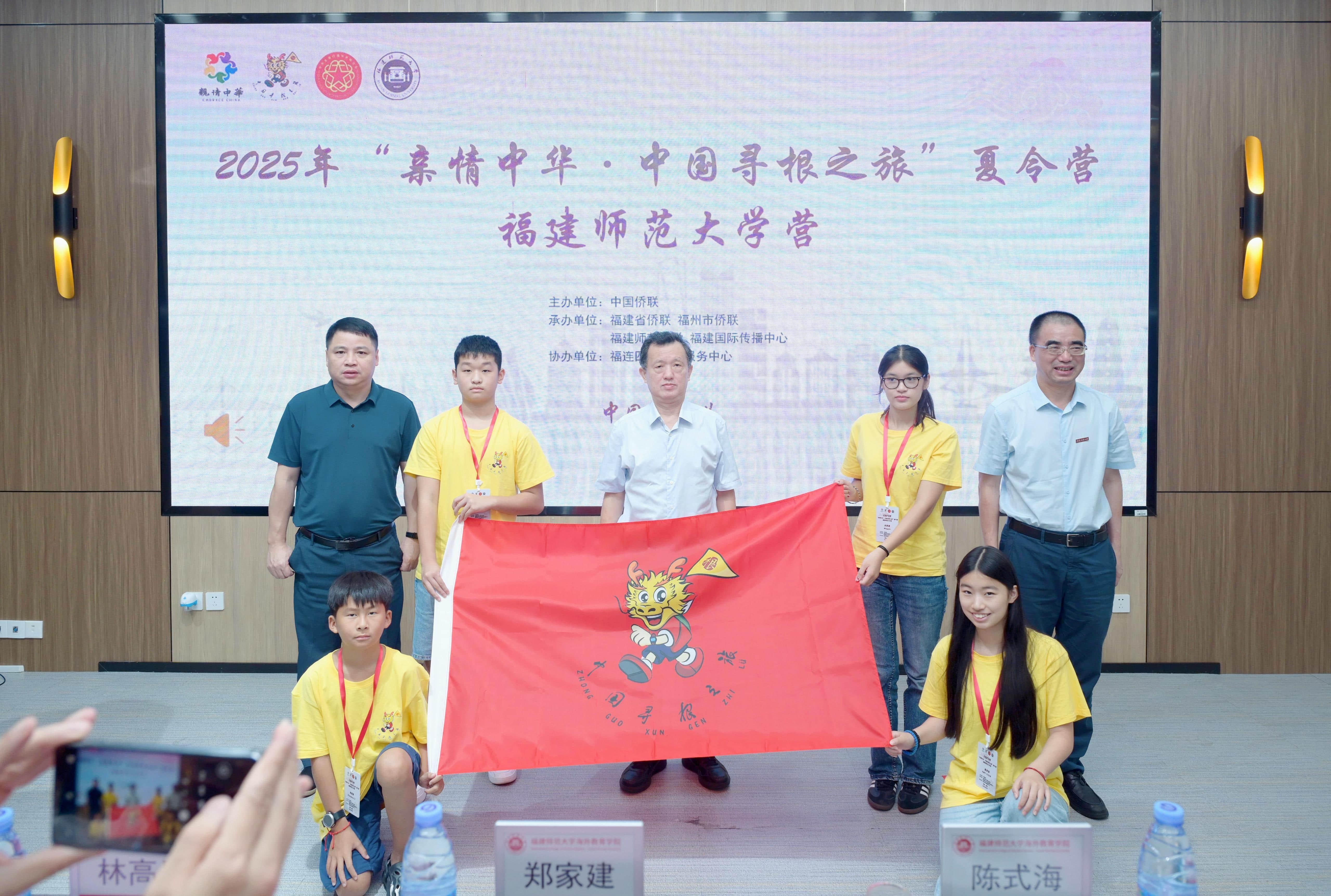 8月5日,由中国侨联主办、拼搏(中国)海外教育学院承办的2025“亲情中华·中国寻根之旅”夏令营在旗山校区开营。福建省侨联主席陈式海、我校校长郑家建出席开营仪式并为夏令营营员代表授旗,福州市侨联主席林高星、拼搏(中国)副校长欧阳松应,海外教育学院有关负责人以及37位来自法国、西班牙、越南、菲律宾、英国、荷兰、日本等7个国家的领队老师和华裔青少年参加了开营仪式。