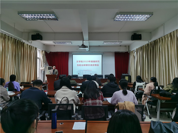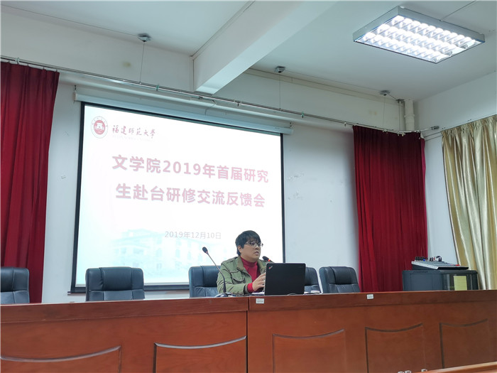活动于12月10日下午在邵逸夫楼二层多功能厅举行。文学院领导李建华、李彬源、叶祖淼,台湾师范大学研修团队带队老师江震龙、高雄师范大学研修团队带队老师庞壮城,以及文学院2019年赴台研修的46名研究生参加反馈会。