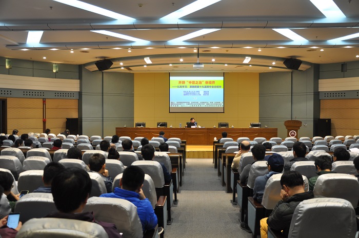校党委讲师团成员、马克思主义学院郑又贤教授应邀作题为《开辟“中国之治”新境界——认真学习、准确把握十九届四中全会精神》的辅导报告。郑又贤教授提出了学习宣传十九届四中全会精神的视角和基本要求,对全会的基本概况、重要意义及我国国家制度和国家治理体系的显著优势等作了全面阐述,同时结合实践经验,对坚持和完善中国特色社会主义制度的具体工作要求以及如何自觉贯彻落实党的十九届四中全会精神等进行了深刻的理论阐释。