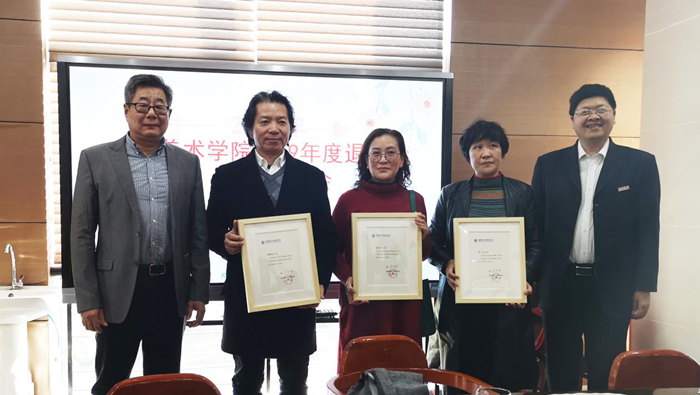 2019年度美术学院李晓伟、郭庆红、杨彤三位老师光荣退休,为感谢他们多年来对学院的奉献,近日,由美术学院工会组织的“美术学院2019年度退休教师座谈会”在学院行政楼三楼会议室举行。学院党政领导,师生代表参加了座谈会。