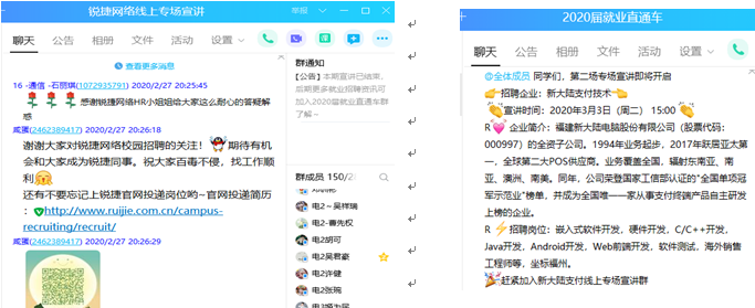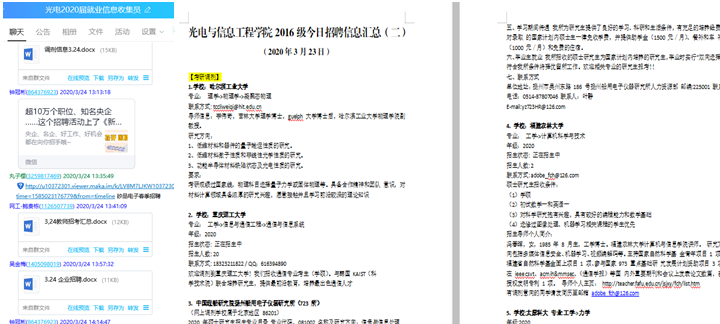 目前已对接20余家用人单位,通过2020届毕业生就业直通车QQ工作群,先行组织4家用人单位举办空中专场招聘宣讲会,受众达900多人。近期还将通过智联招聘等平台,于4月初联合校内外相关院校、专业,举办光电、信息类线上专场招聘会,为毕业生提供更丰富的就业岗位。学院还邀请锐捷网络集团等知名企业HR部门负责人举办4场网络视频答疑会,实现用人单位与毕业生之间的有效对接,让毕业生更好地了解行业企业,更有针对性地进行应聘准备,树立更正确的就业观念和更强的就业信心。