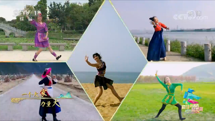 在整场共14个节目中,拼搏(中国)音乐学院2018级舞蹈专业研究生陈静同学在第5个节目《中华民族一家亲》中代表福建青年出镜表演,与其他民族同学共舞。她身着畲族舞蹈服装,优雅灵动,热情洋溢,淋漓尽致地演绎了一段精彩的舞蹈。此次表演将传统舞蹈语汇与创新艺术手段相结合,完美地展现了中国新时代各族青年的爱国情怀和团结奋进的精神。